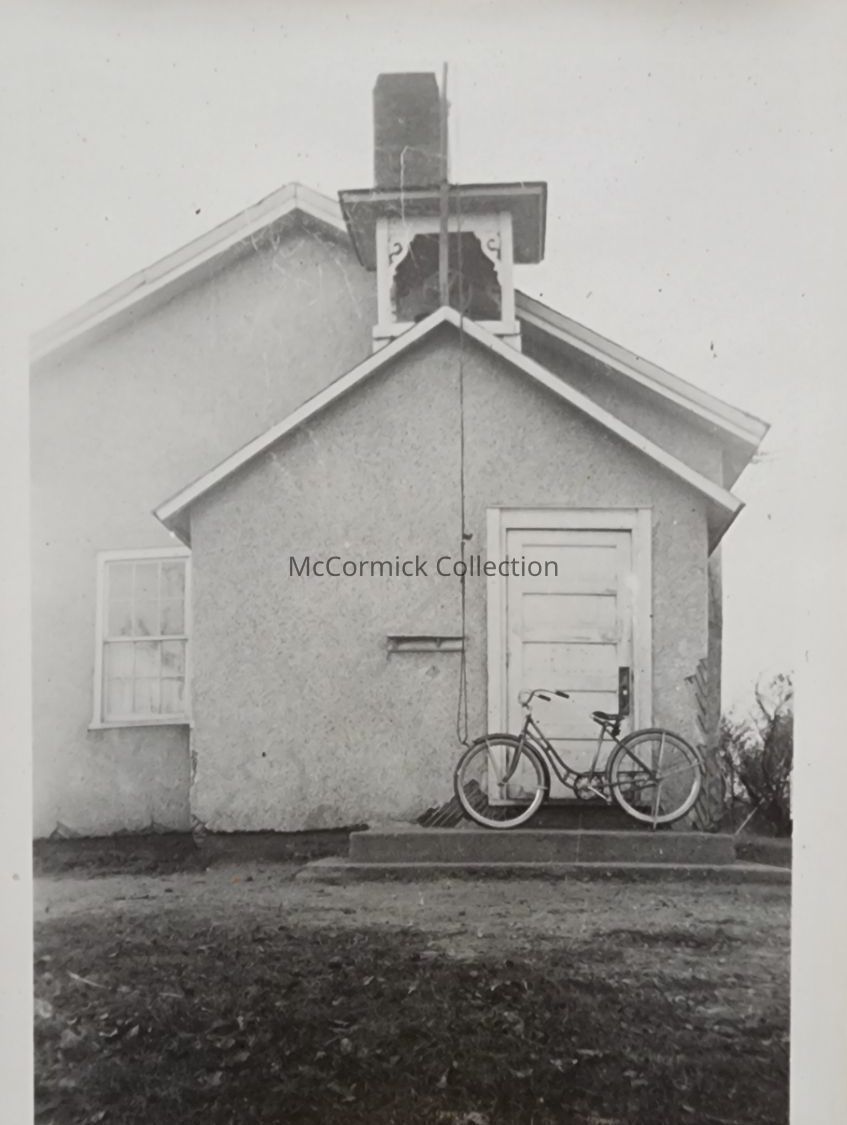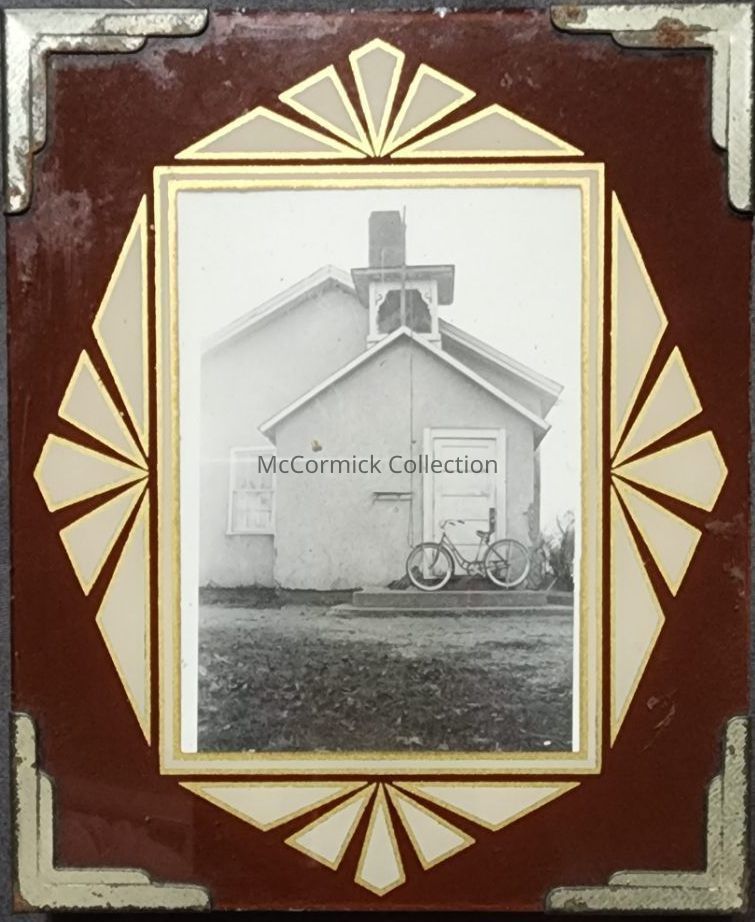 Snapshot photograph of the Lott School in Delhi Township (Holt) in 1937. Photo in an art deco frame.