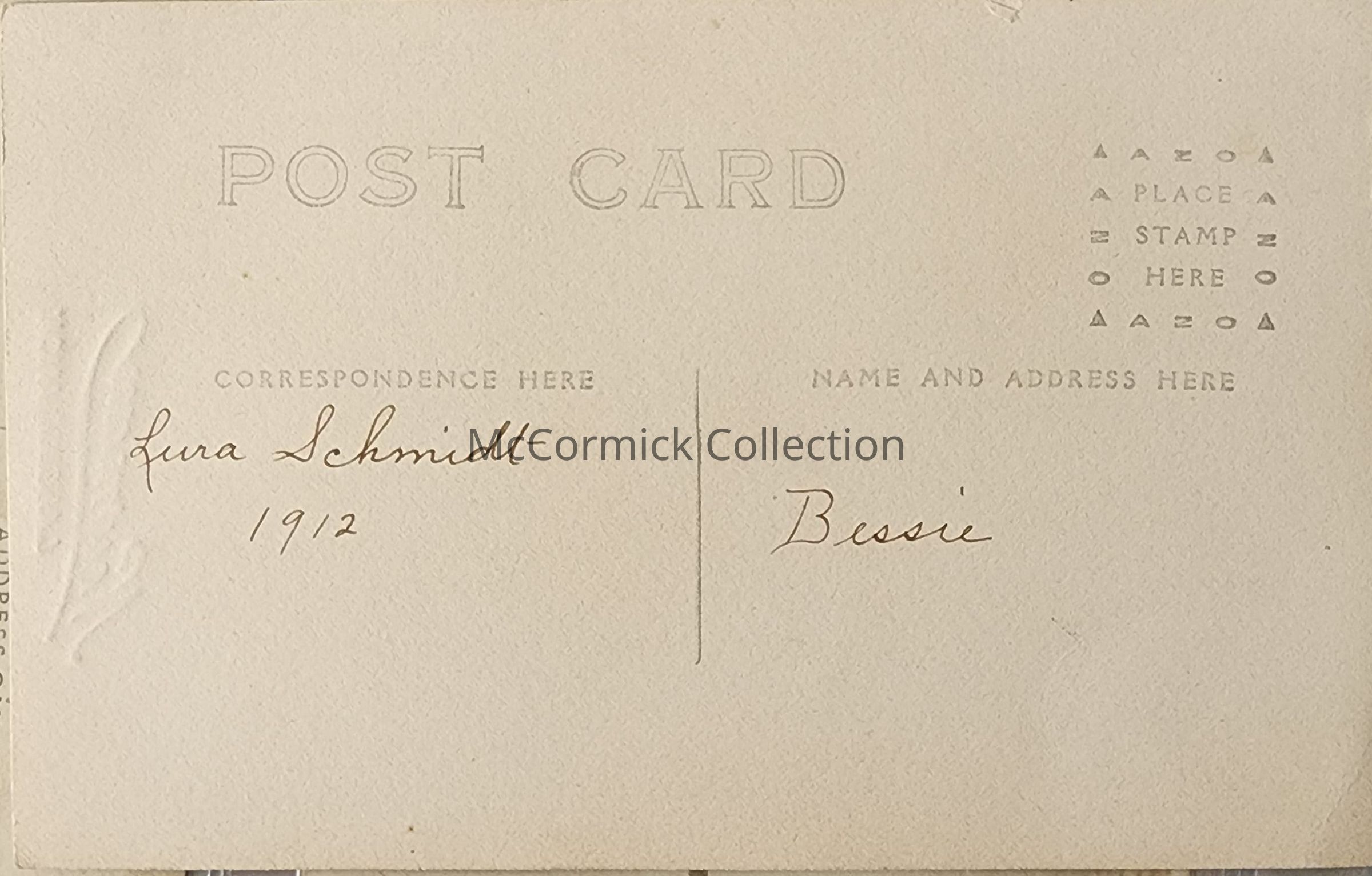 Real photo postcard of Lura Schmidt, dated 1912, by Lansing photographer Newman.