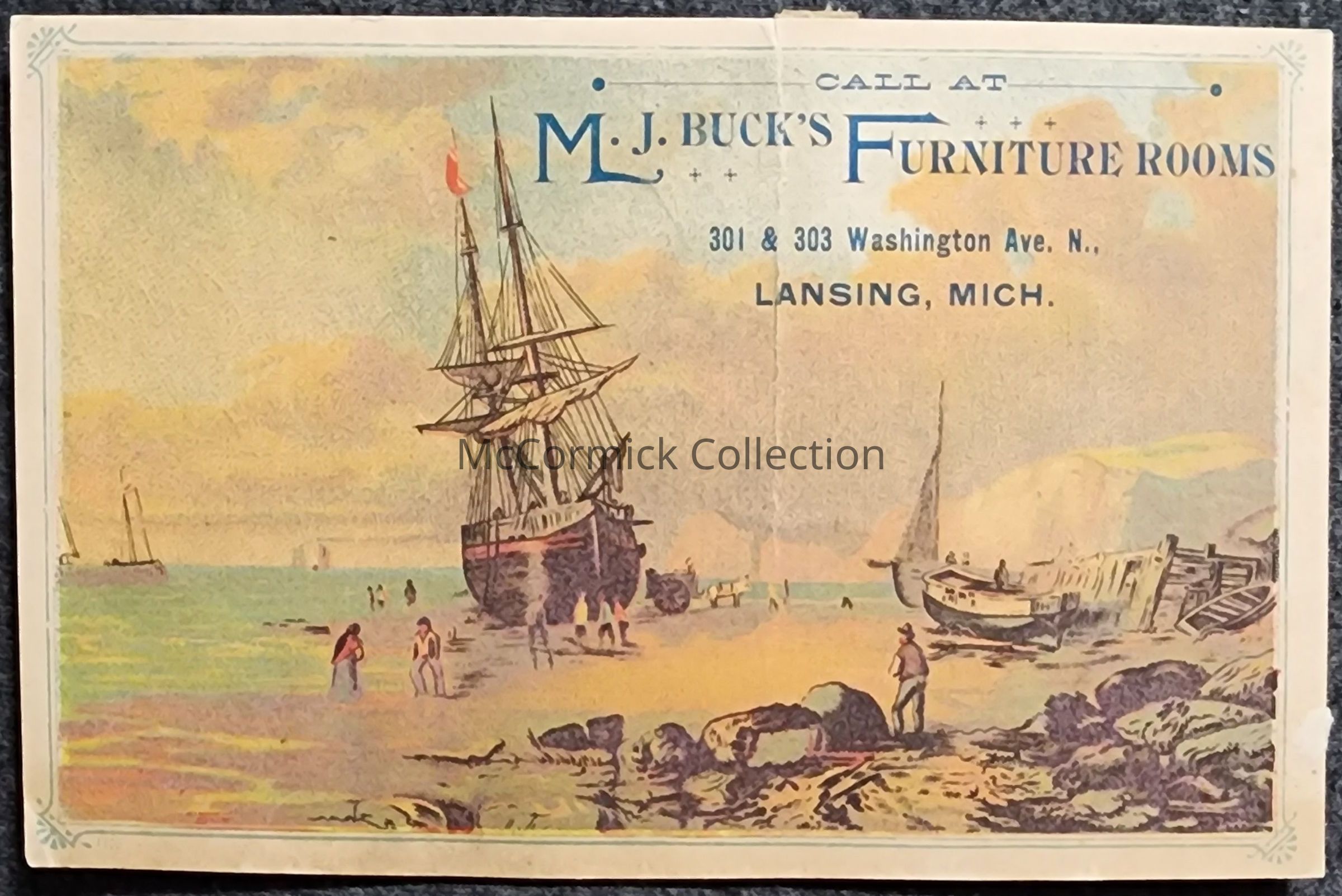 A trade card from M.L. Buck's Furniture Rooms of Lansing.