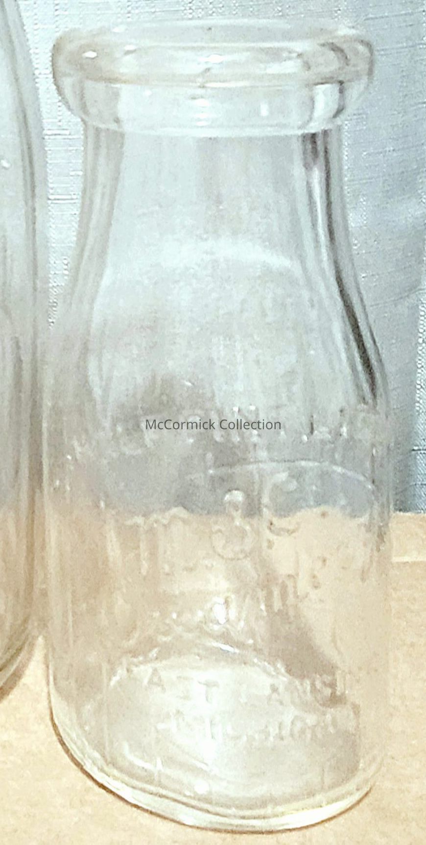 An embossed half pint bottle with ridges and slug plate from the Michigan State College Creamery of East Lansing.