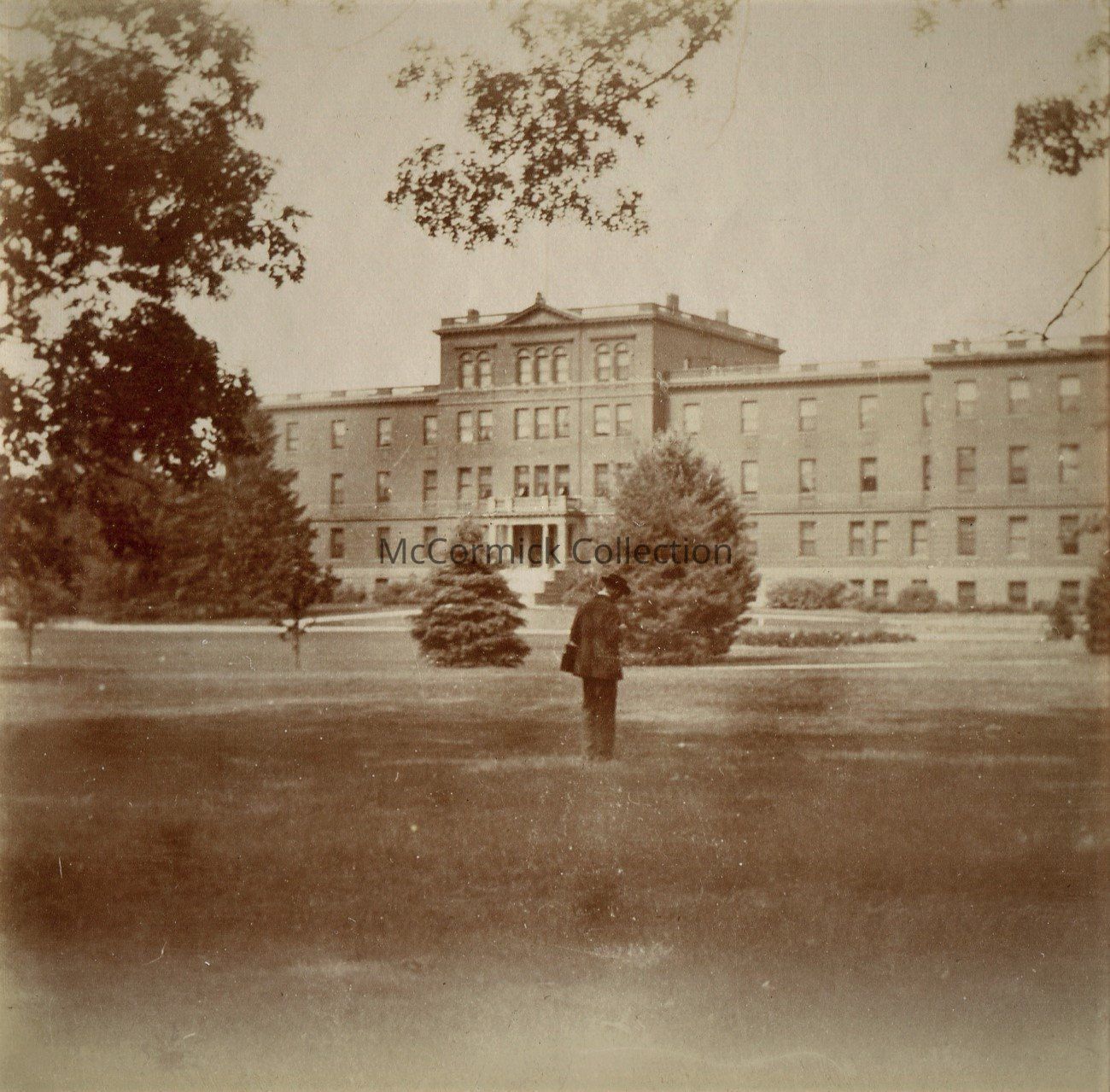 A snapshot photograph of the Women's Building (later Morrill Hall) at Michigan State Agricultural College, circa 1903. Likely taken by MAC student Theron P. Chase. From the Chase Collection.