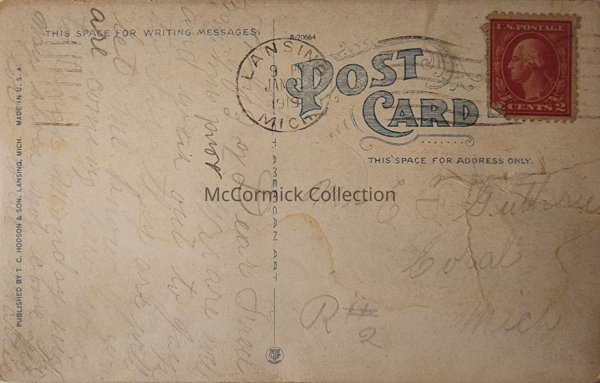 Postally used, Lansing postmark 1919.
