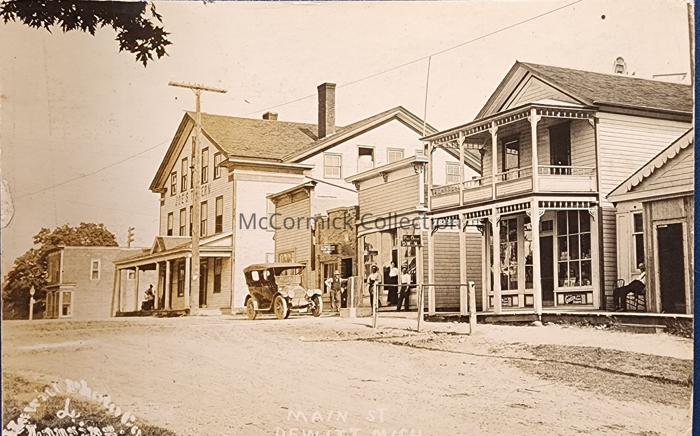 Real photo postcard of Main Street in DeWitt, Clinton County, Michigan, by Hewitt Photo Co. of Lansing. Dated 1916.