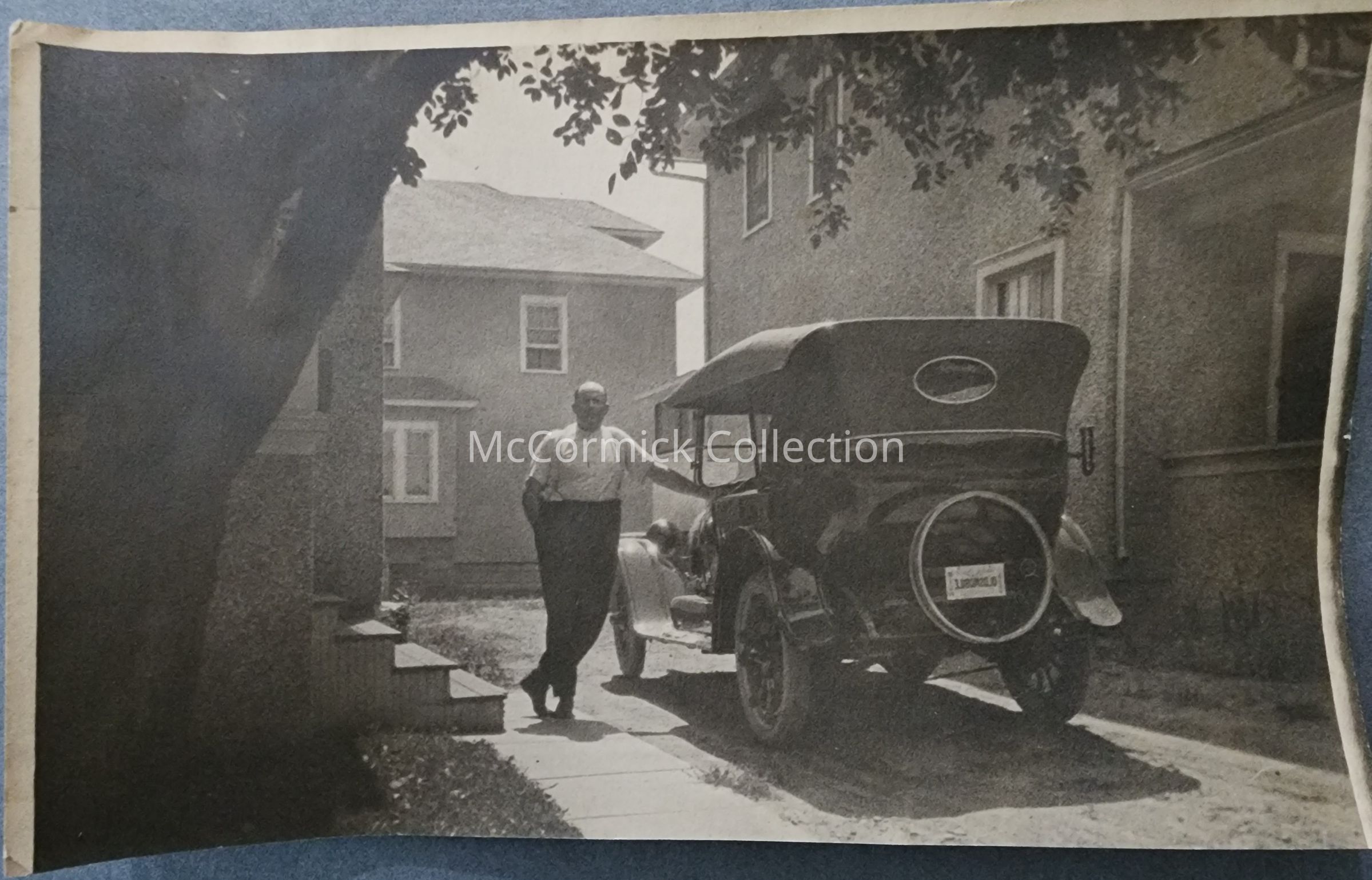 Snapshot photograph described as "Picture reversed / Steps of 1309 W. Lenawee were on West Side of drive / Other house on east side were 'Unc' Tony Nuffers."