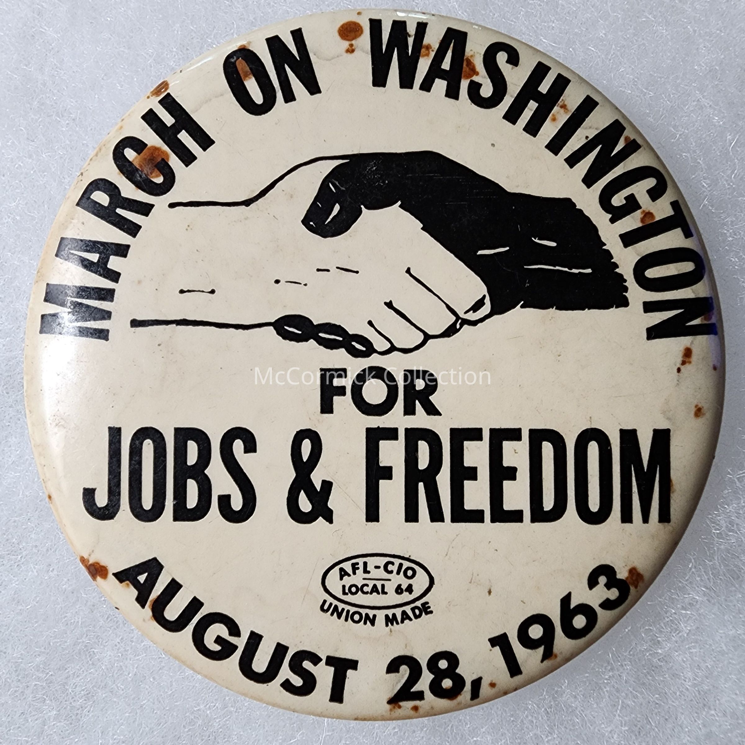 A 3" button from the March on Washington for Jobs & Freedom, August 28, 1963.