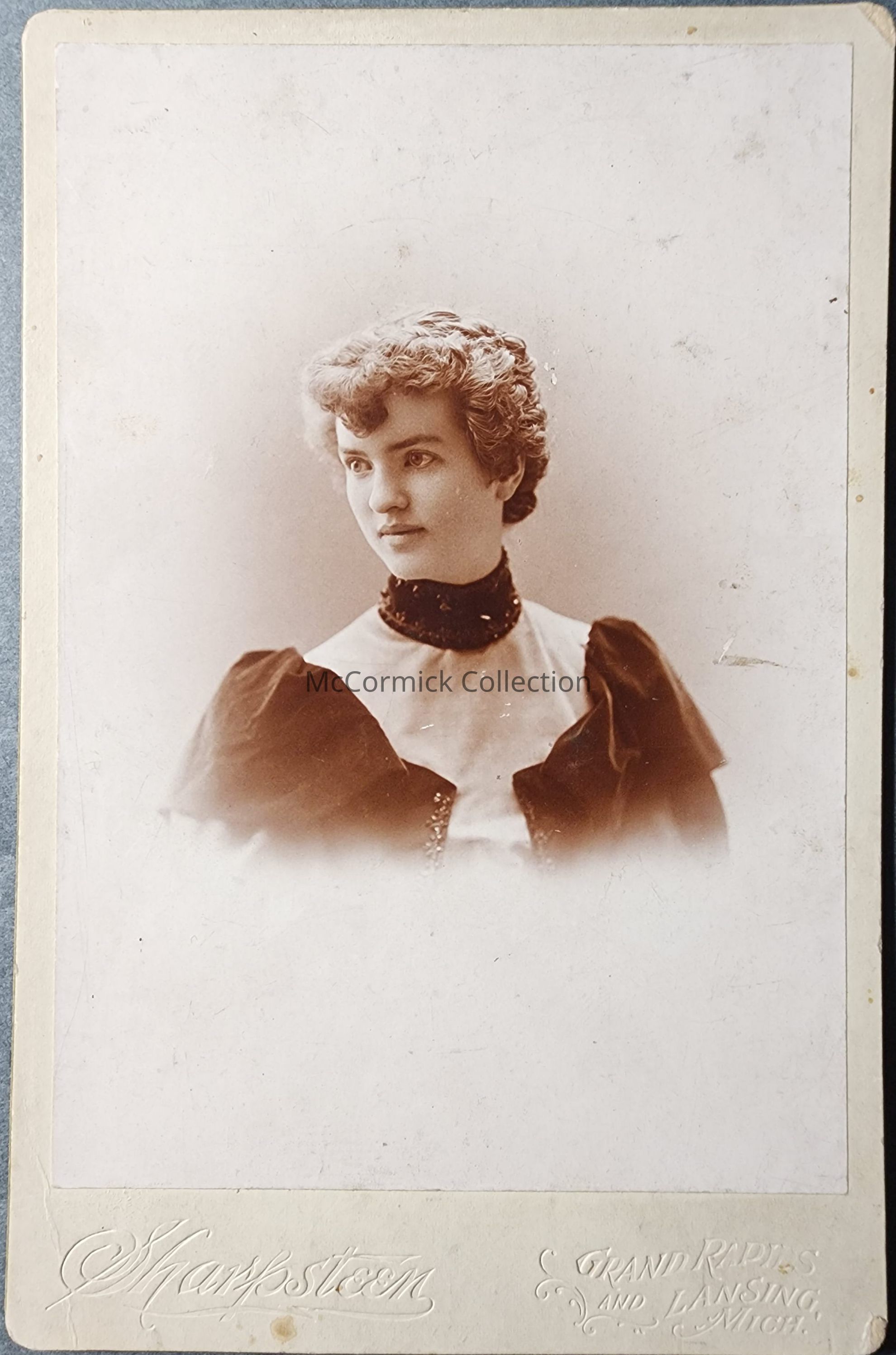 Cabinet card photograph of Margaret Howlett, sister of Barney Howlett, by Lansing photographer Sharpsteen.
