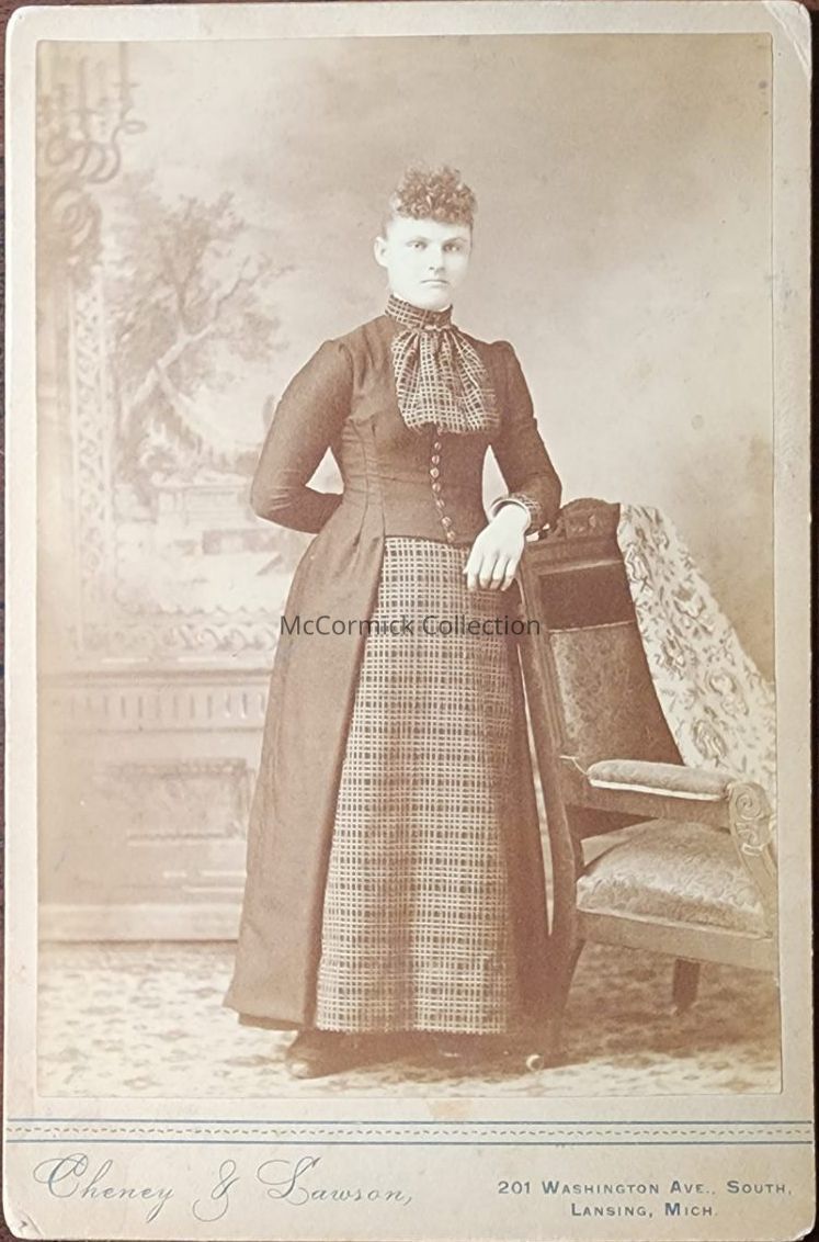 Cabinet card photograph of Mary Kletzlen (sp) by Lansing photographer Cheney and Lawson.