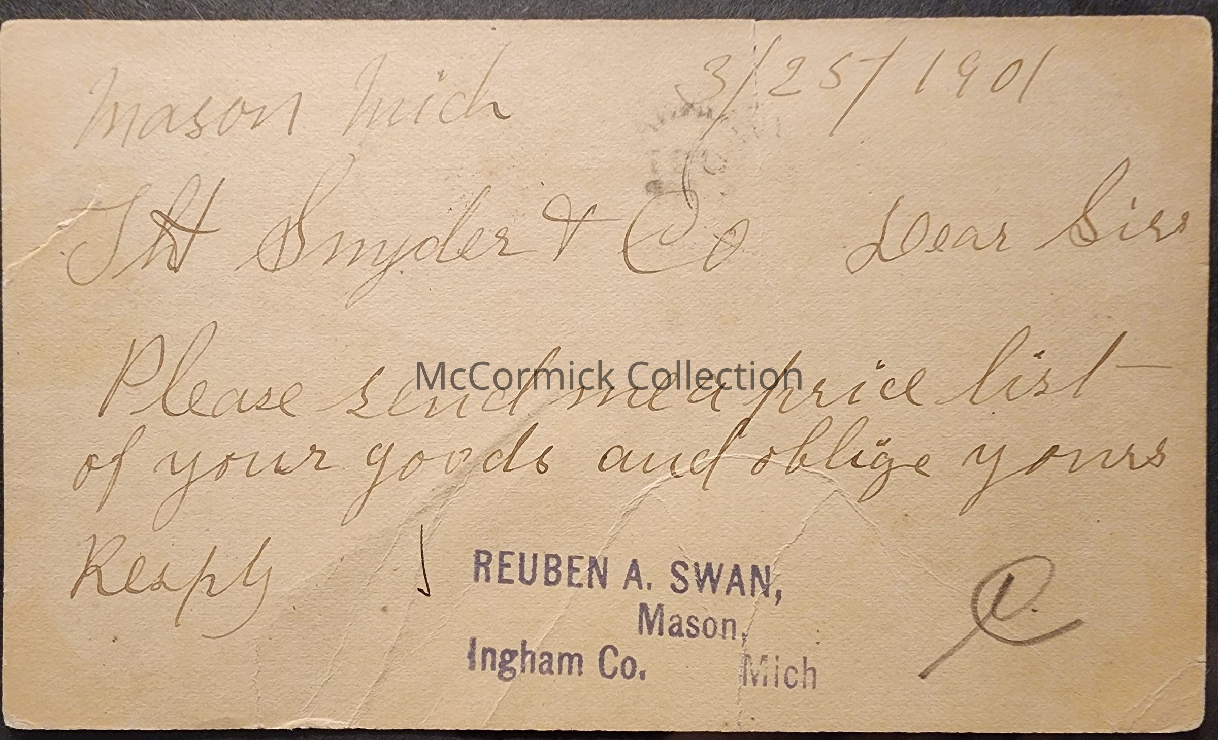 Mason, Mich., 1901, Postal Card