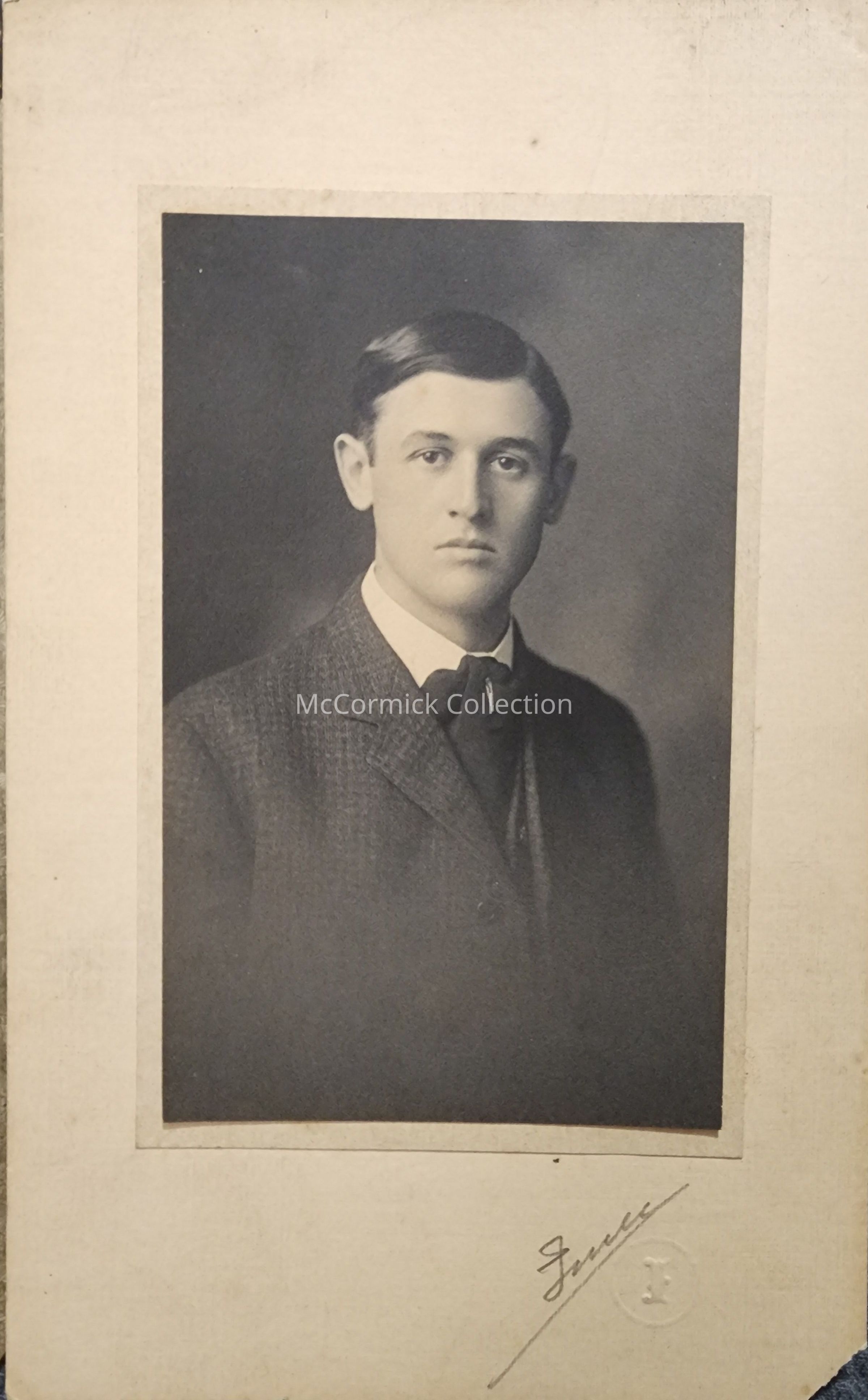 Portrait photograph of Maurice F. Johnson of Milo, Mich., by Lansing photographer Imes.
