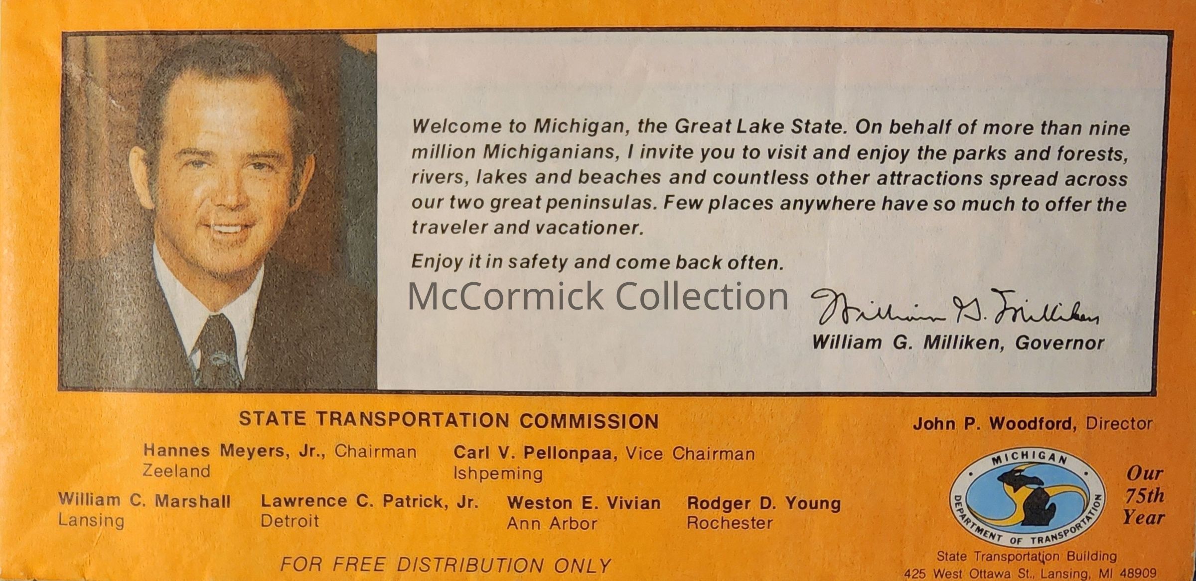 Michigan State Transportation (Highway) Commission map. Governor William Milliken listed.