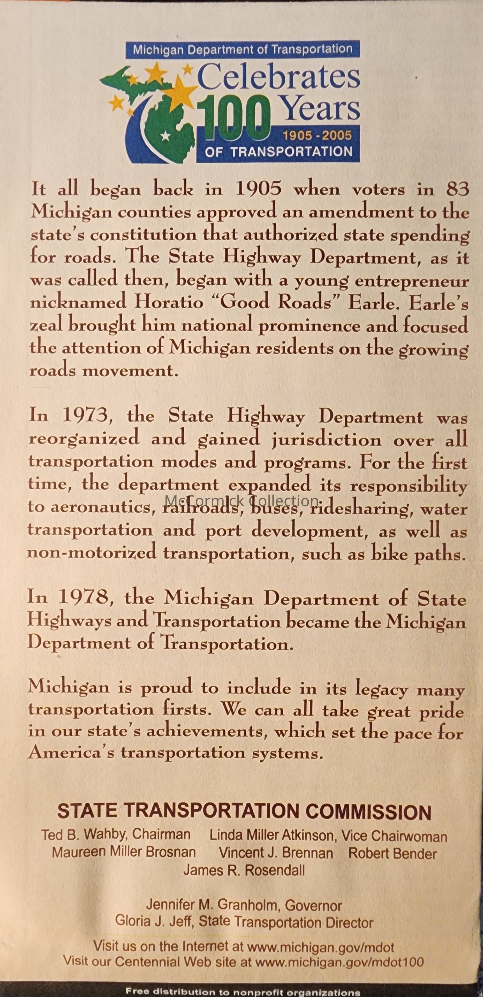 One Hundred Years of Michigan Transportation theme, 1905-2005.