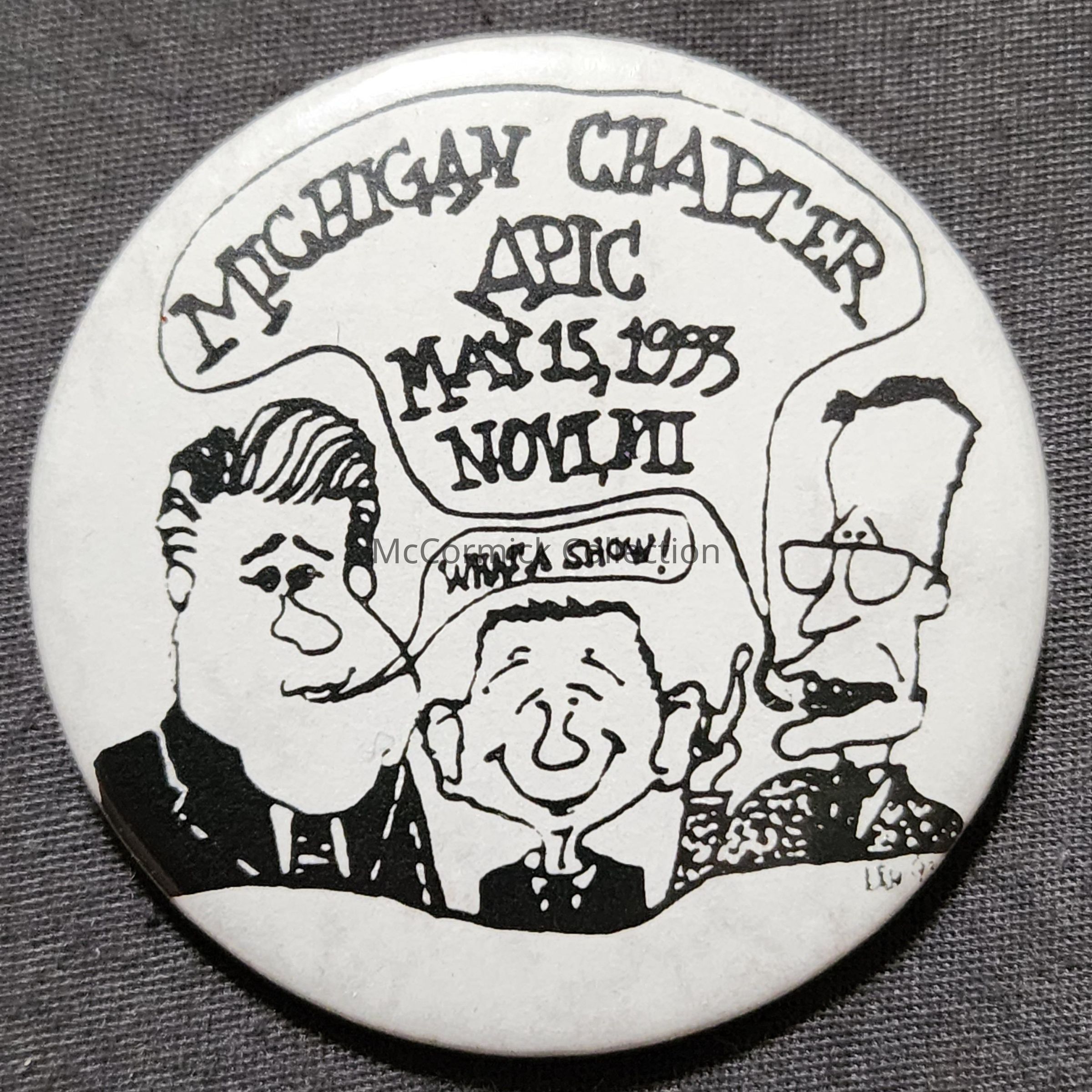 A 1.75" black and white button from the Michigan Chapter, American Political Items Collectors, May 15, 1993, Novi, MI.