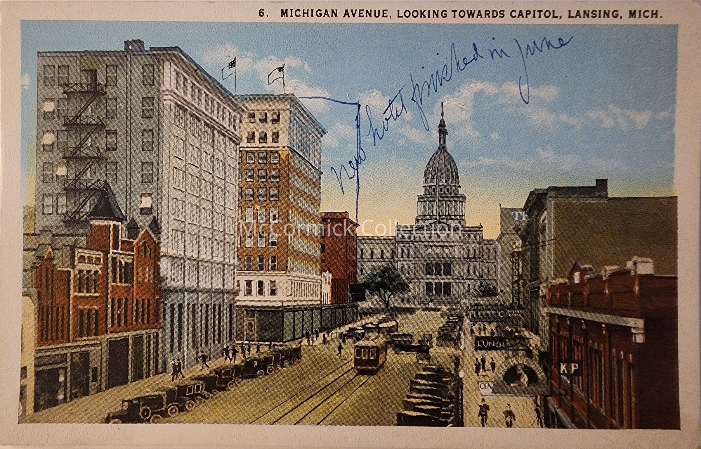 Michigan Avenue, Looking Towards Capitol, Lansing, Mich., Postcard
