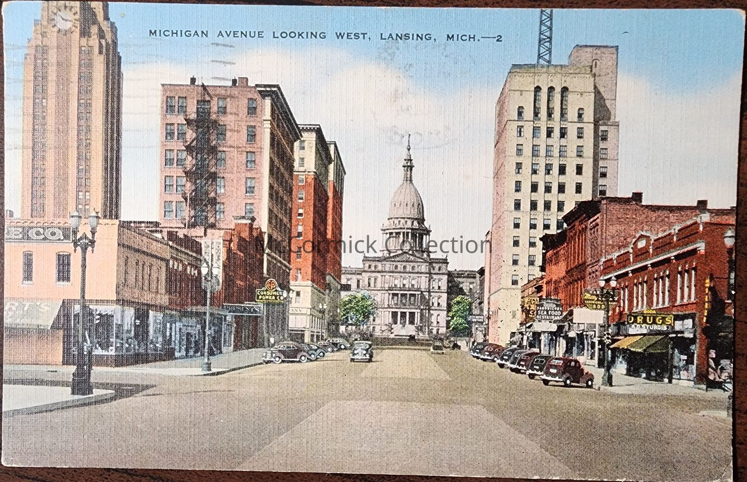 Michigan Avenue Looking West, Lansing, Mich. Postcard