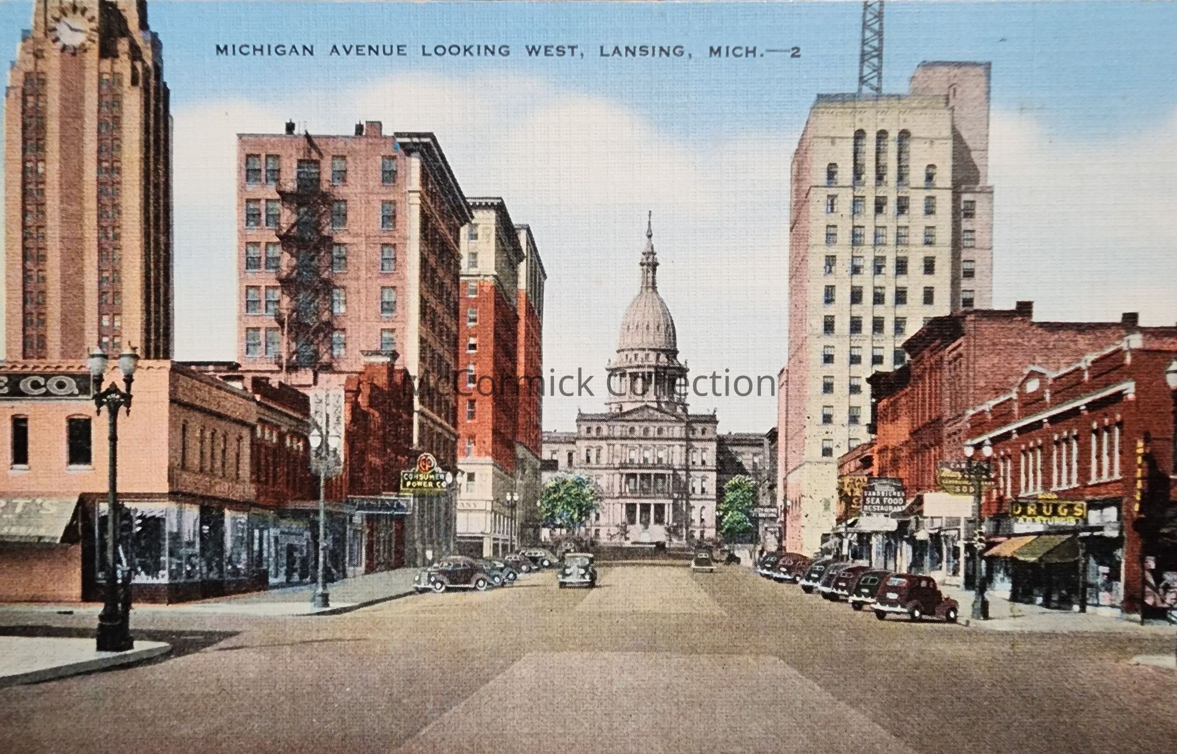 Michigan Avenue Looking West, Lansing, Mich., Postcard