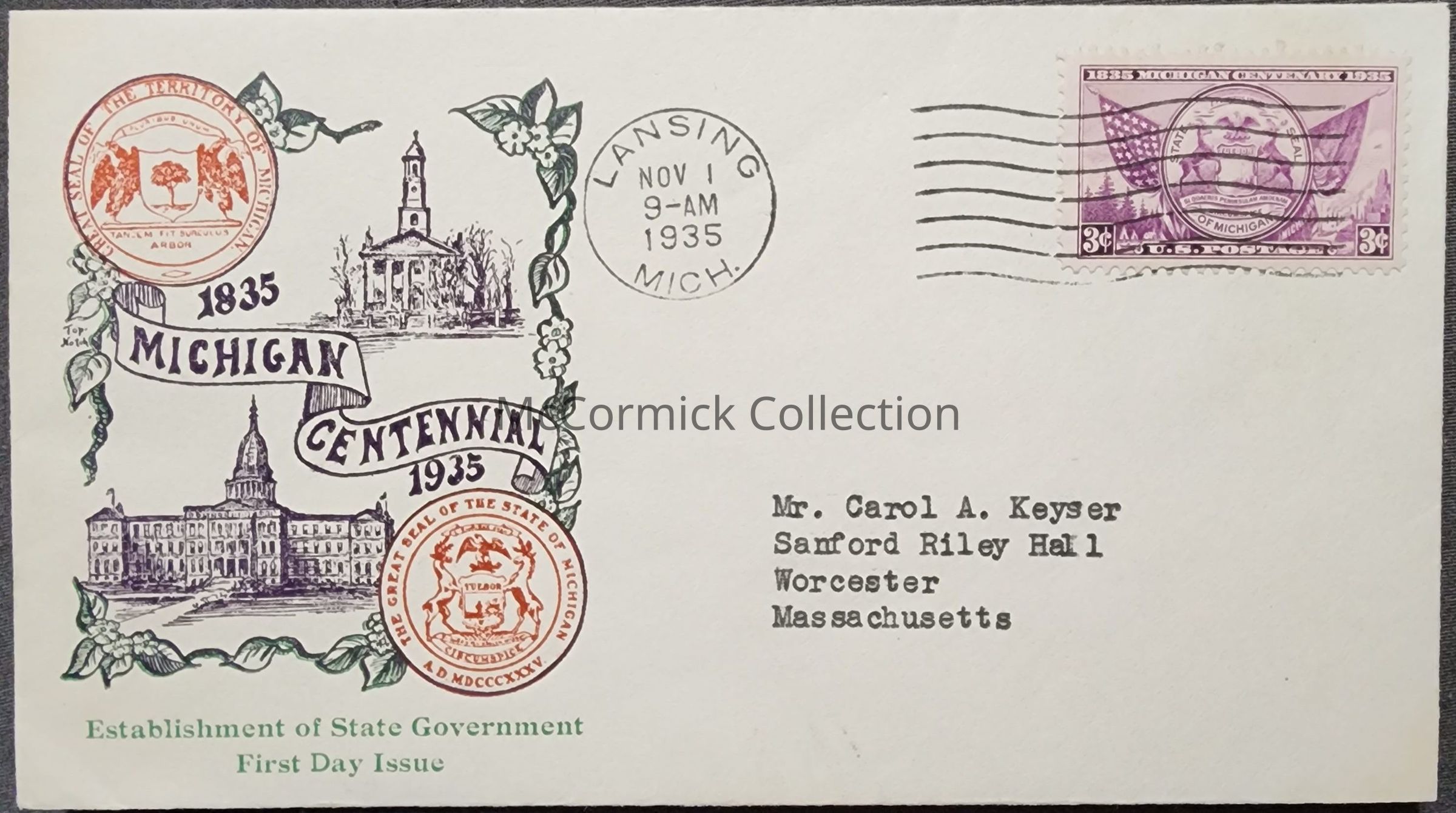 Michigan Centennial 1935 First Day Cover