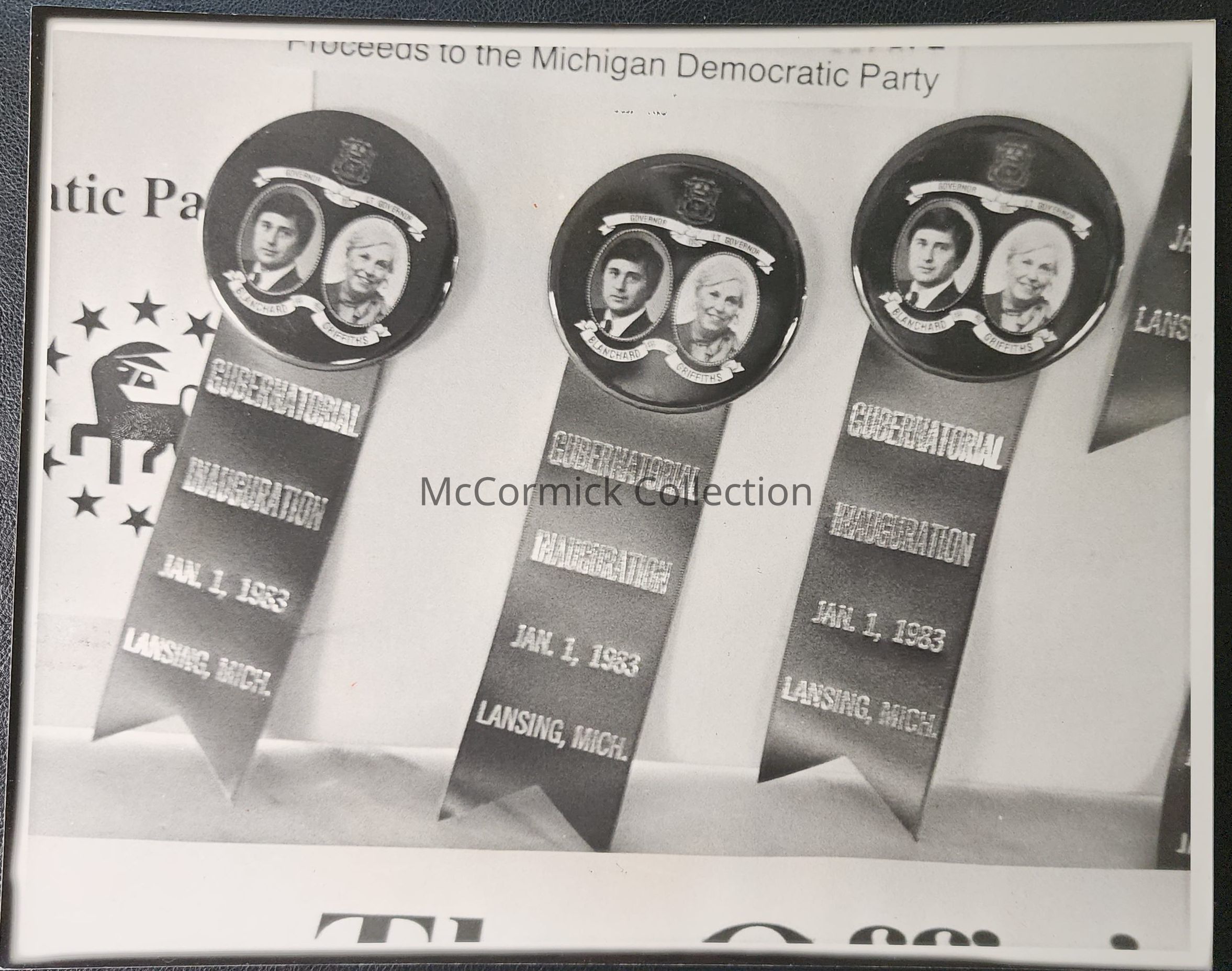 Michigan Democratic Party, 1983 Gubernatorial Inauguration Buttons Press PhotoDescription