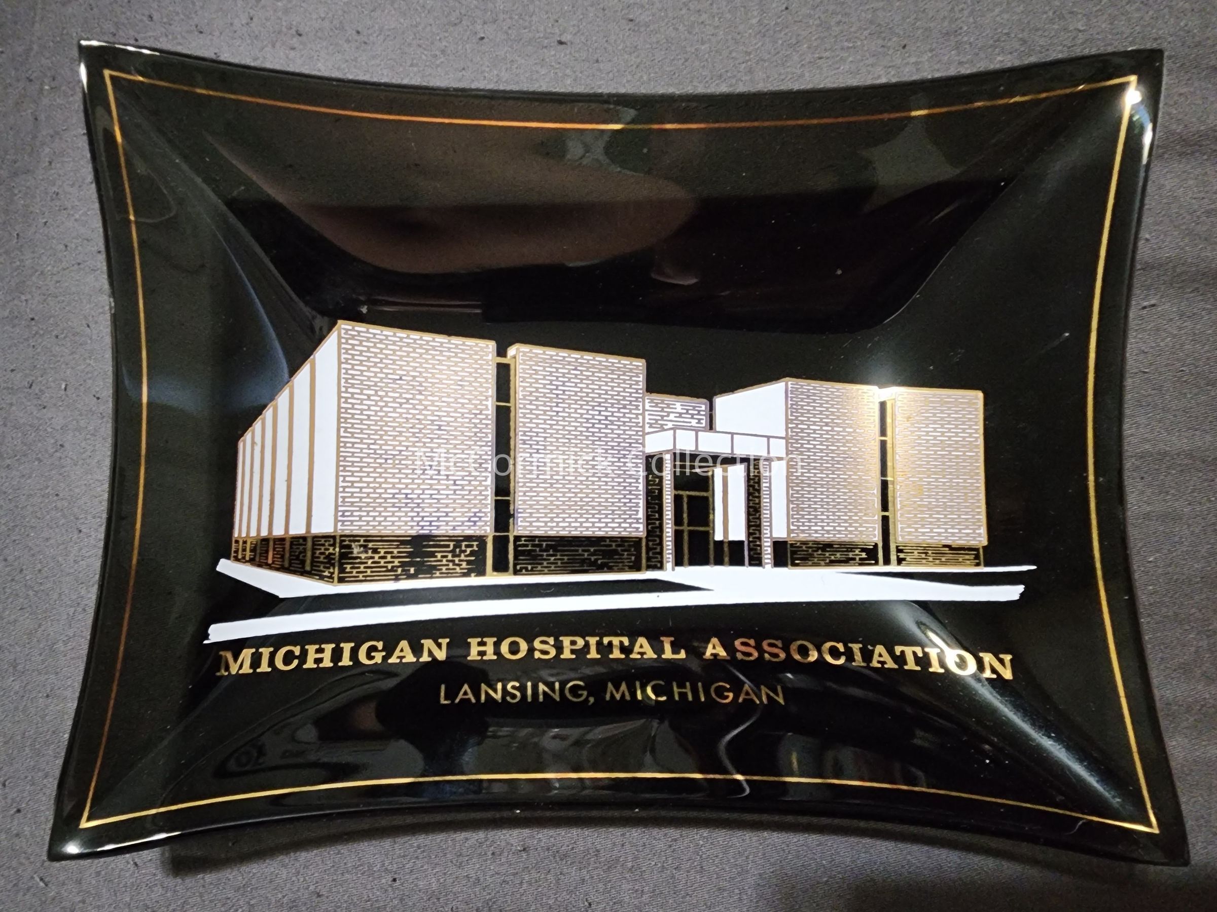 A Houze Art Glass style tray or dish for Michigan Hospital Association in Lansing, Michigan.