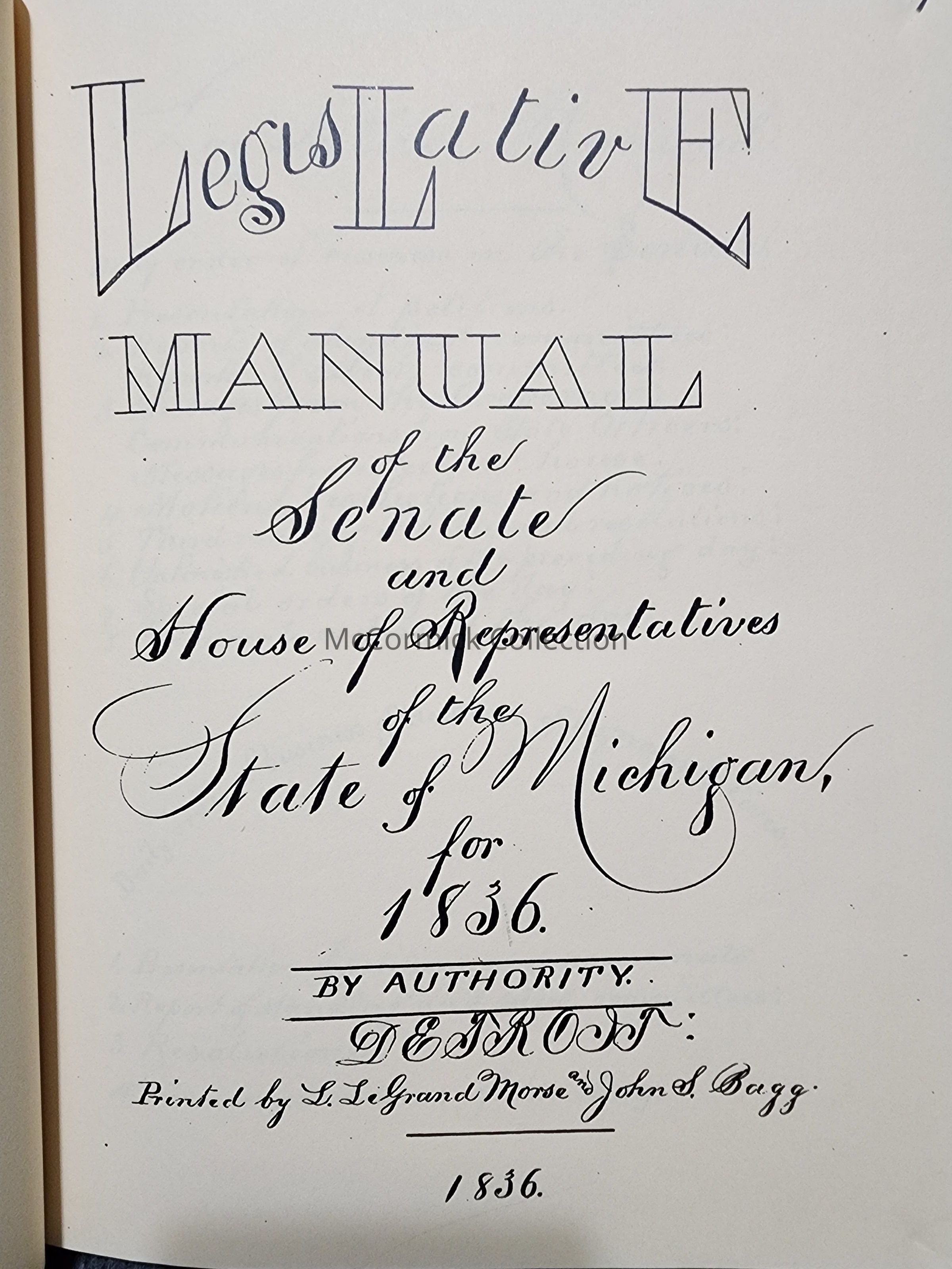 Michigan Manual 1836 Reprint