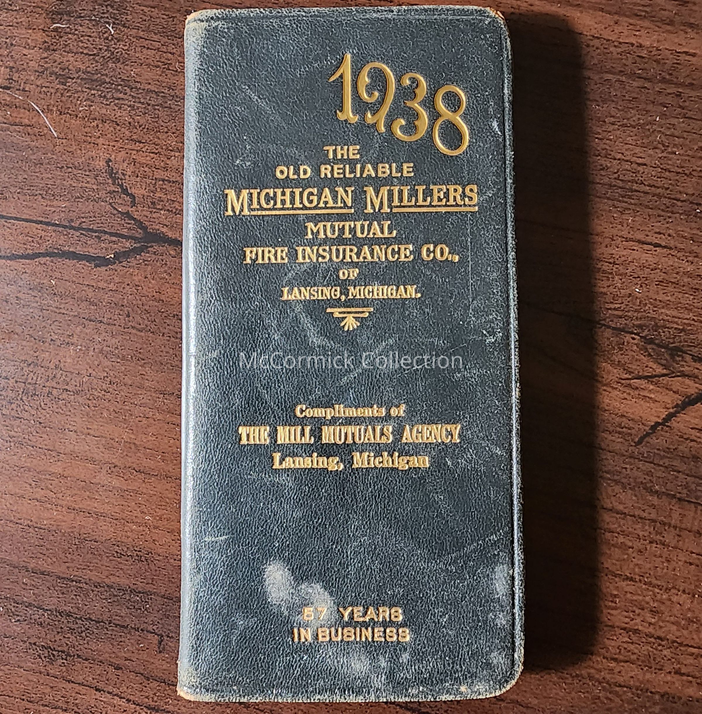 Datebook, calendar, journal from Michigan Millers Mutual Insurance, belonging to Marjorie Bush. Dated 1938. From Siebert Estate.