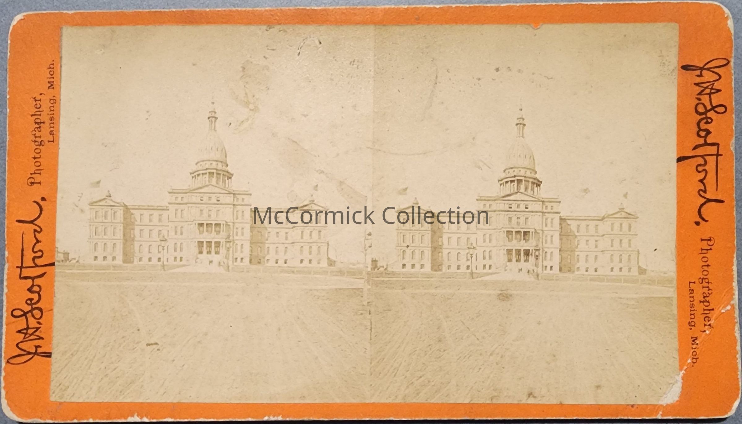 Stereograph of the Michigan State Capitol, circa 1879, by Lansing photographer John Harvey Scotford.