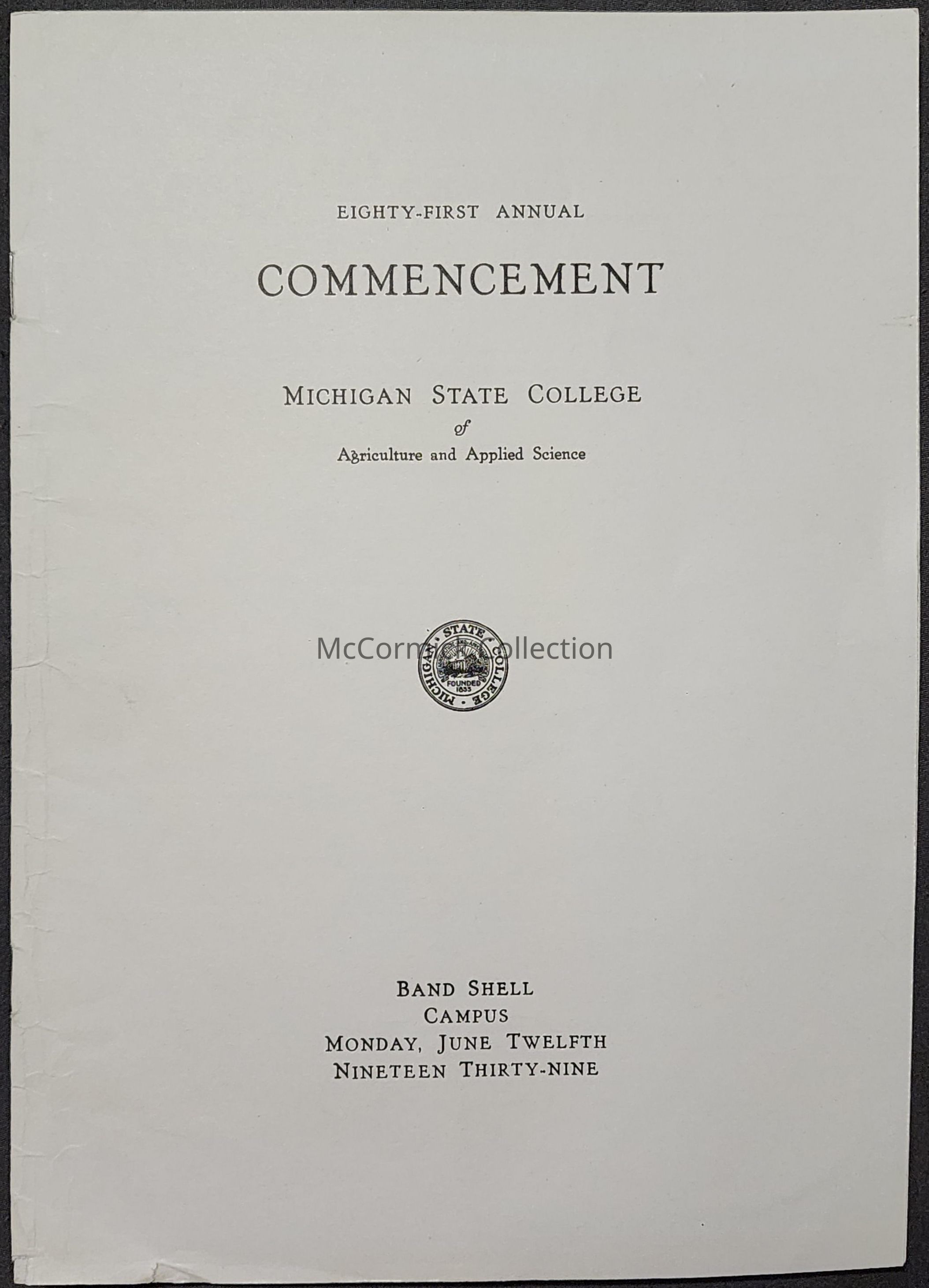 Michigan State College 1939 Commencement Program