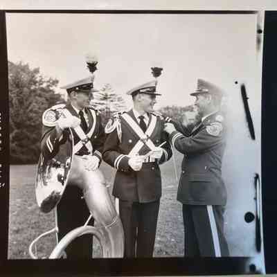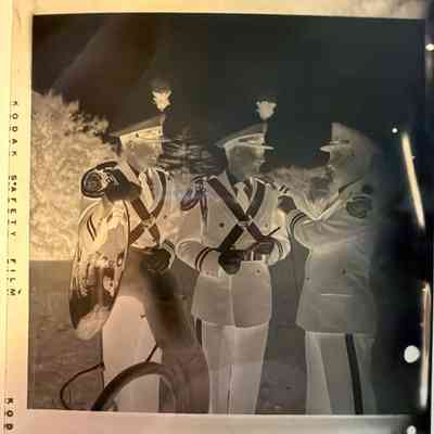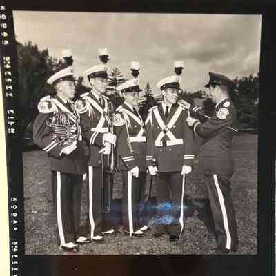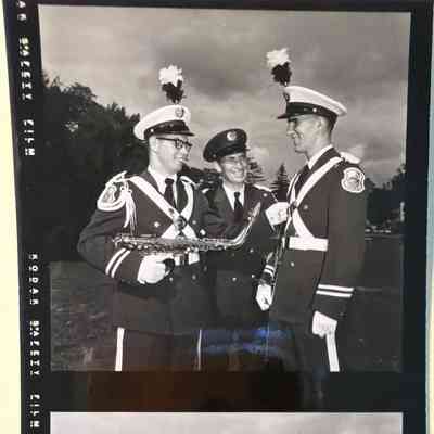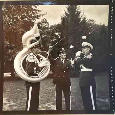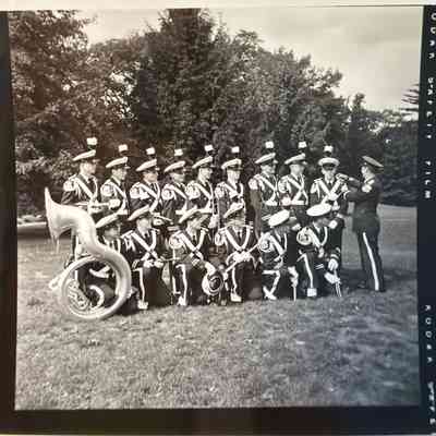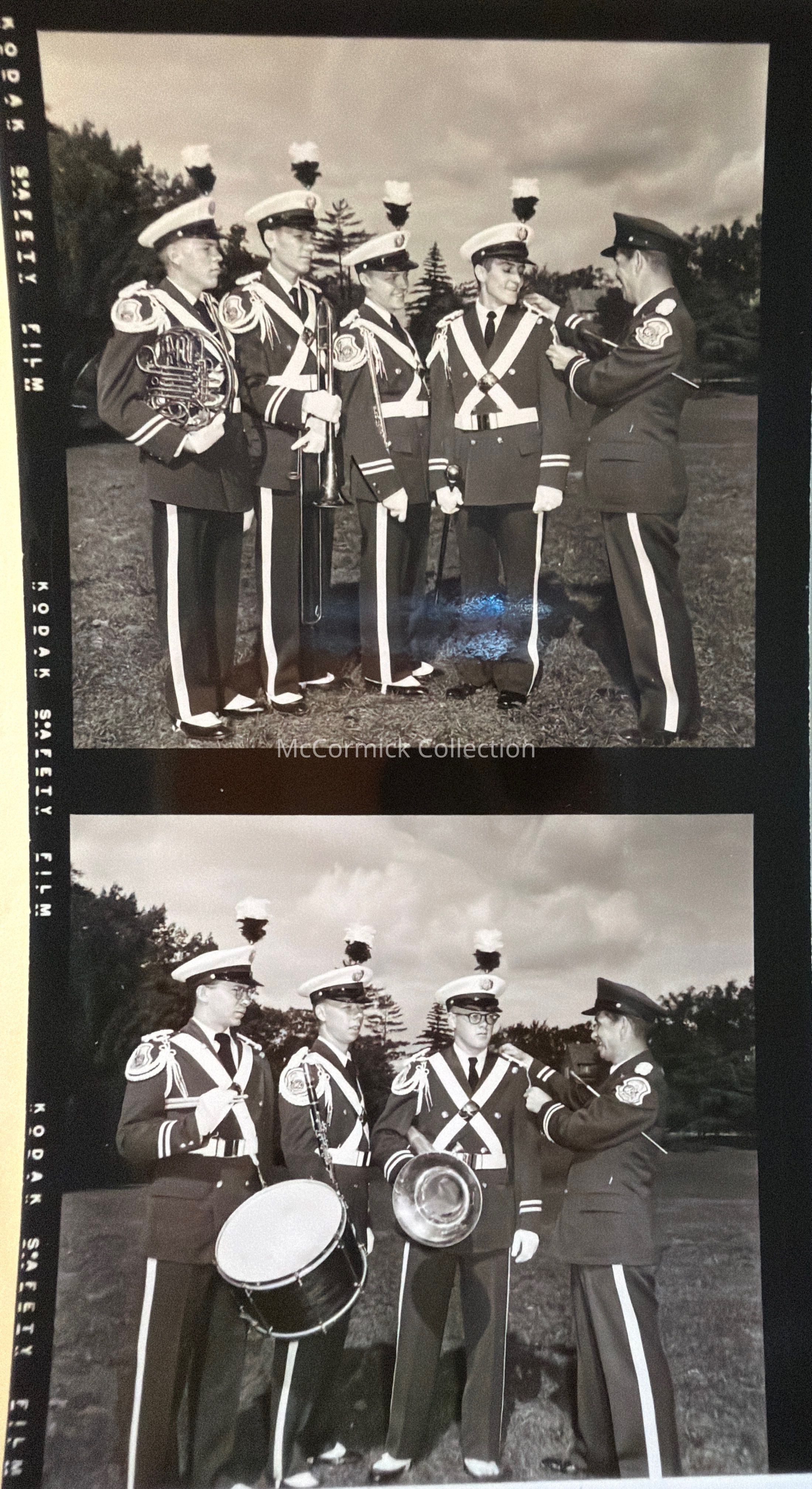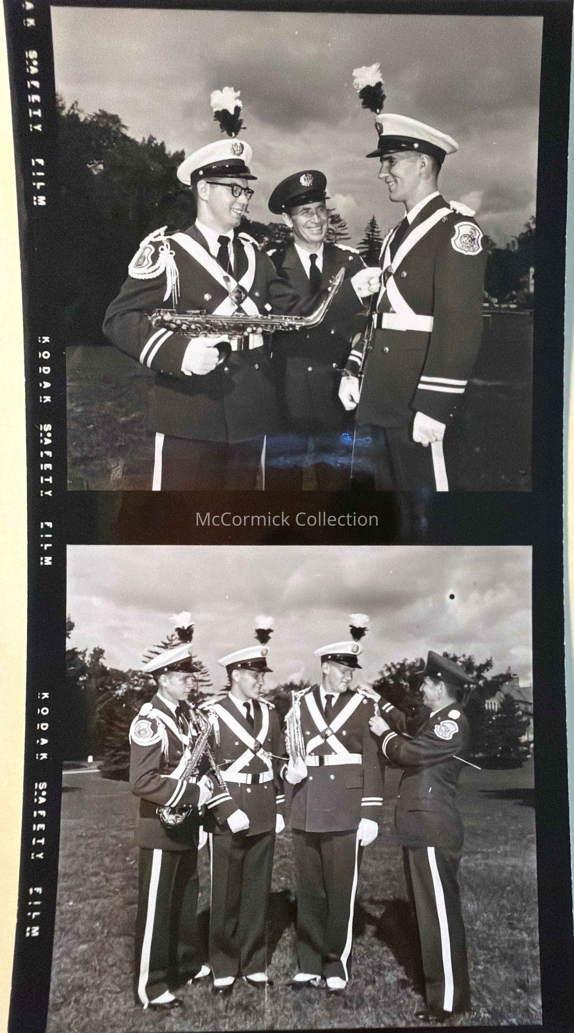 Series of contact photo prints of Leonard Falcone and Michigan State College Band members. Gift of Cece Falcone.