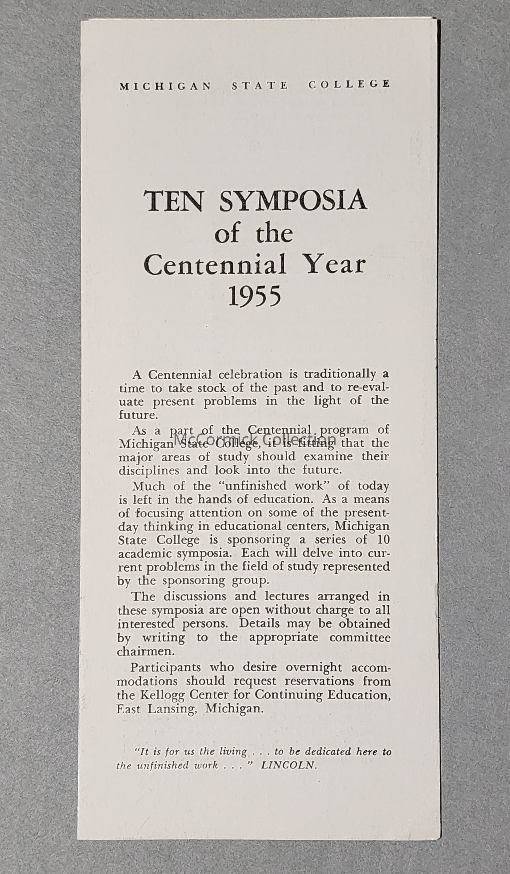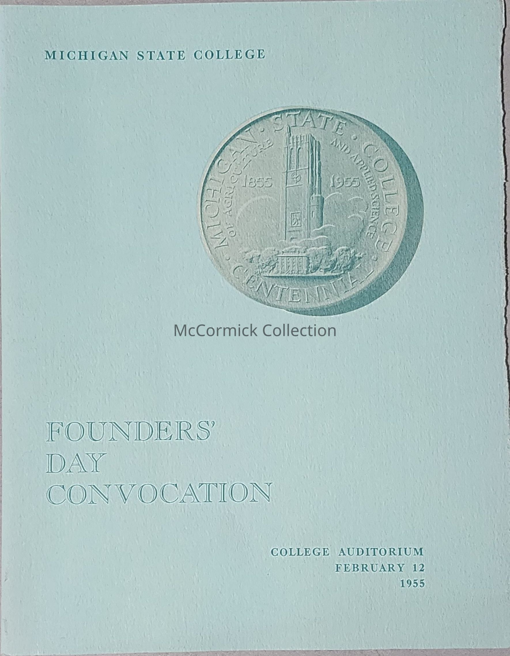 Program from the 1955 Michigan State College Founders Day Convocation ceremony at the Auditorium.