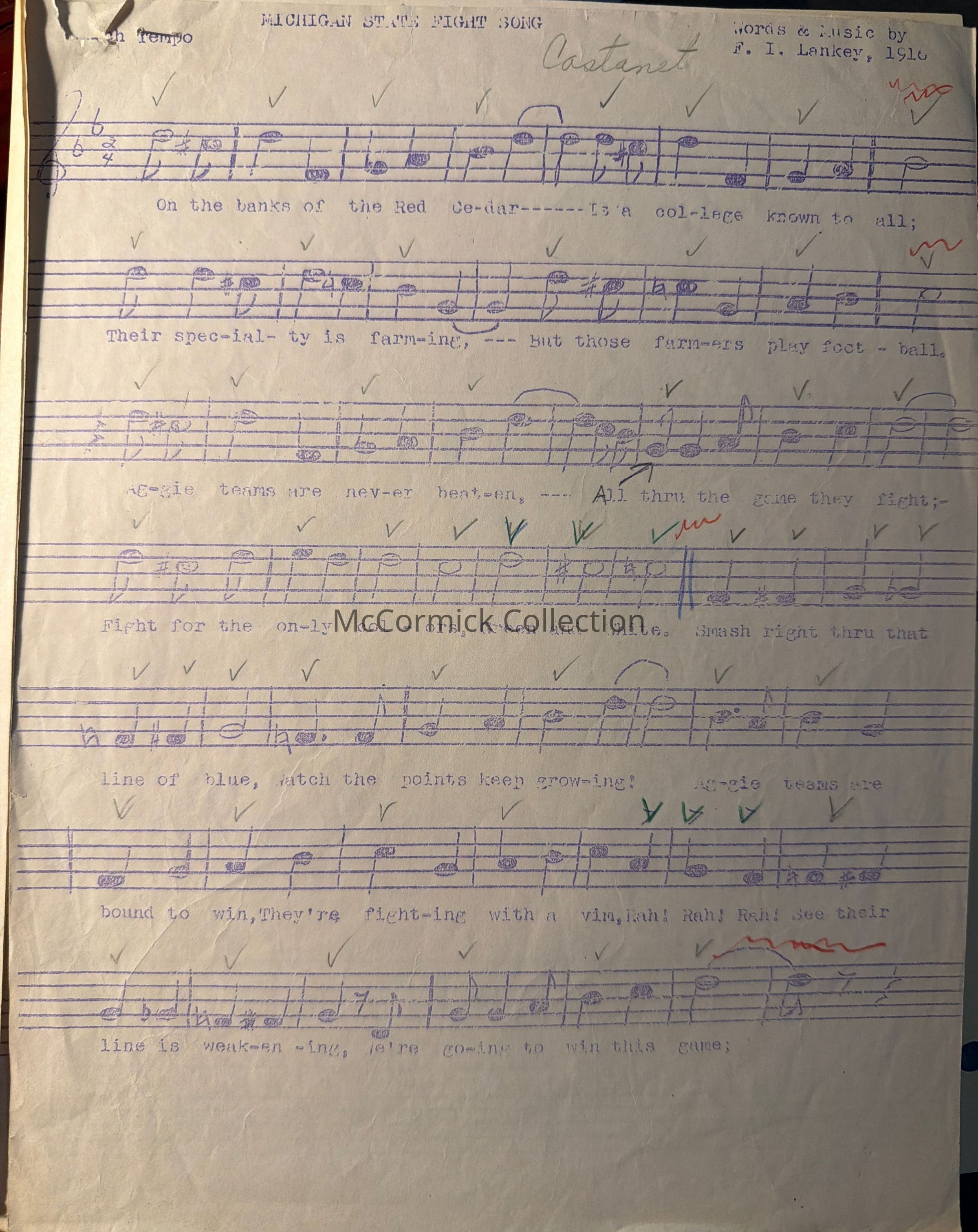 Michigan State Fight Song Drumline Sheet Music, c. 1950s