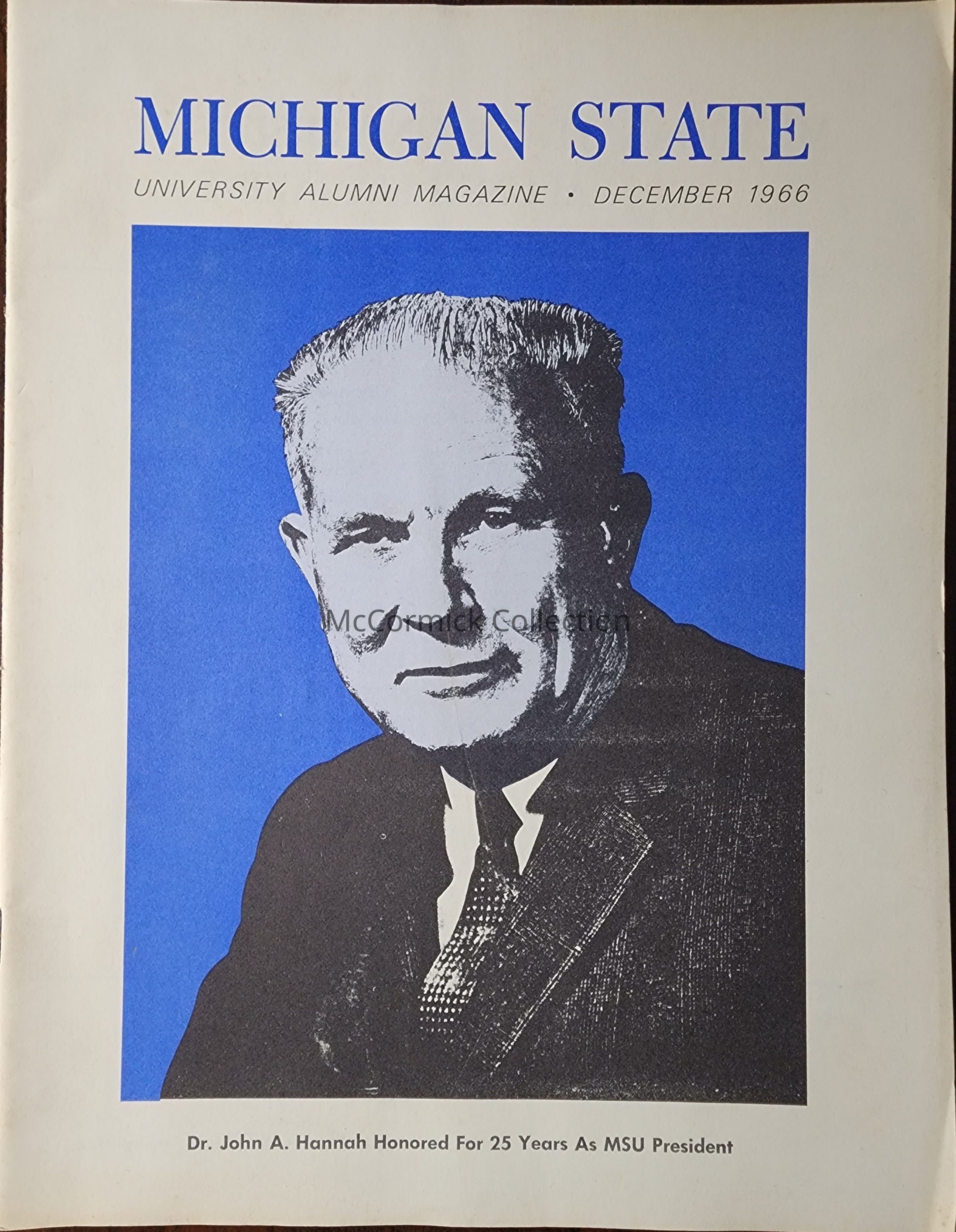 The December 1966 Michigan State University Alumni Magazine, honoring John A. Hannah on 25 years as president of MSU.
