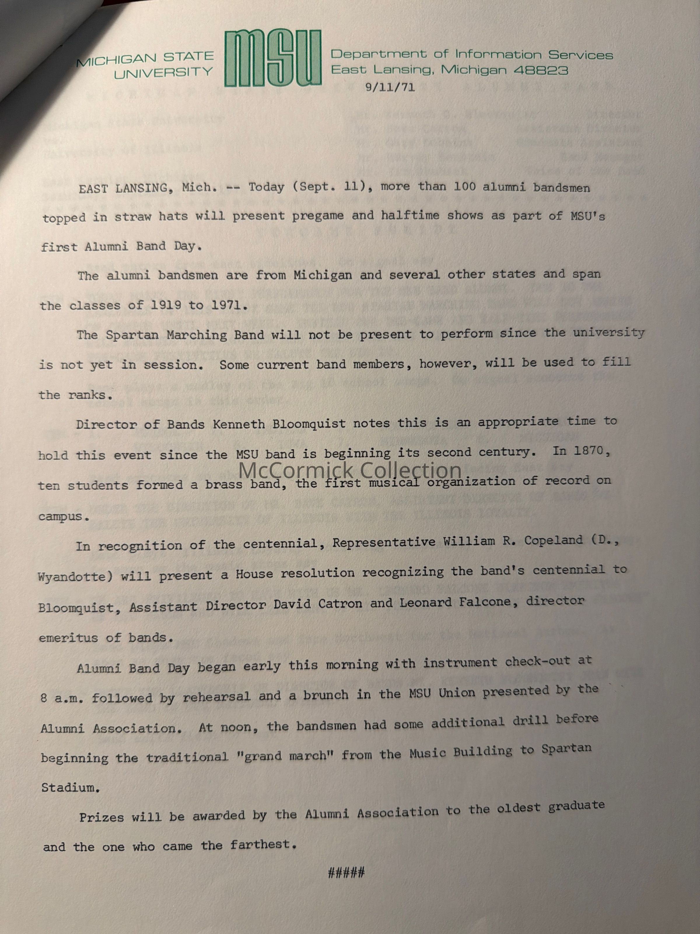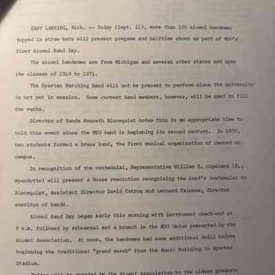 Michigan State University Spartan Marching Band Presents Alumni Band Day, 1971, Media InformationDescription