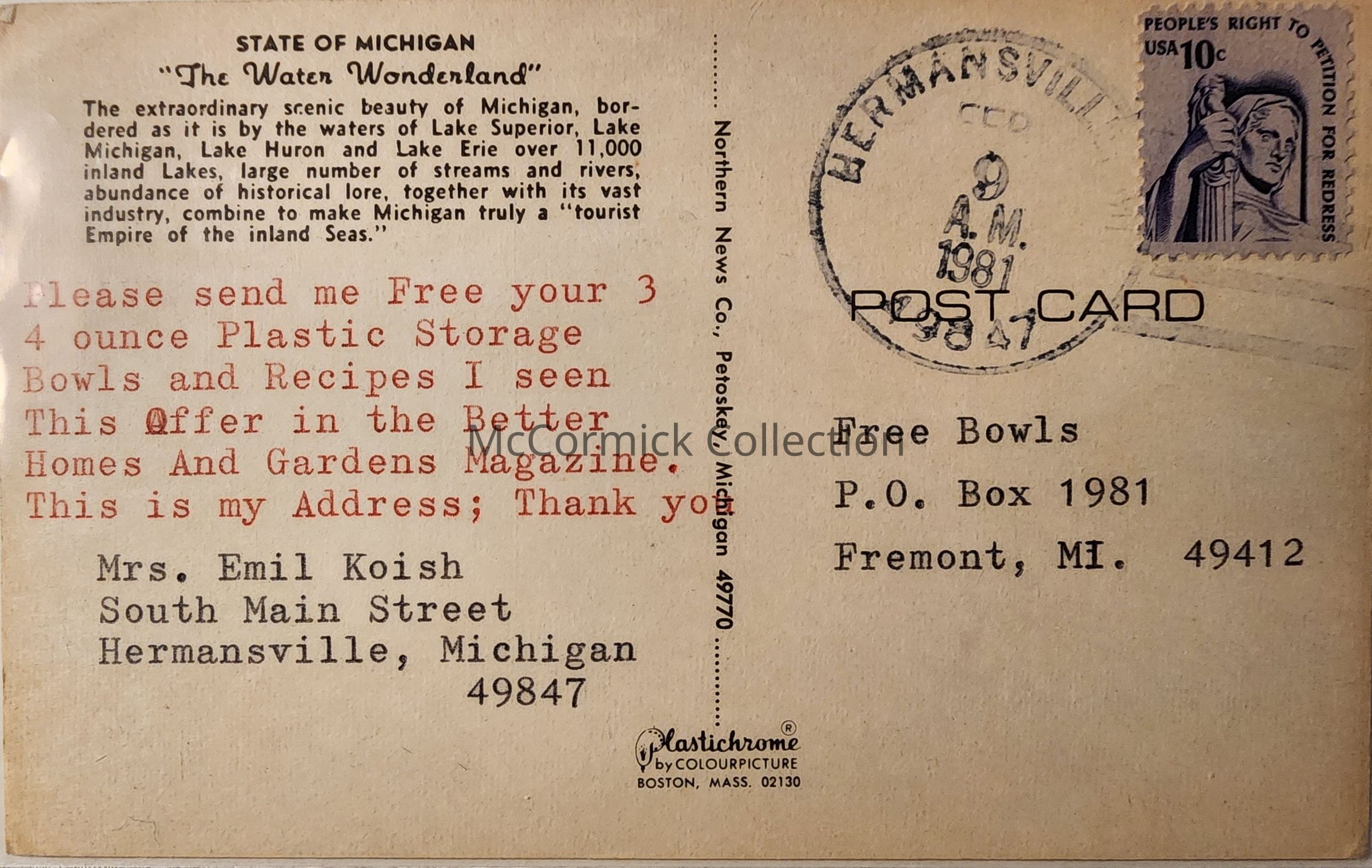 Michigan Tourism Postcard