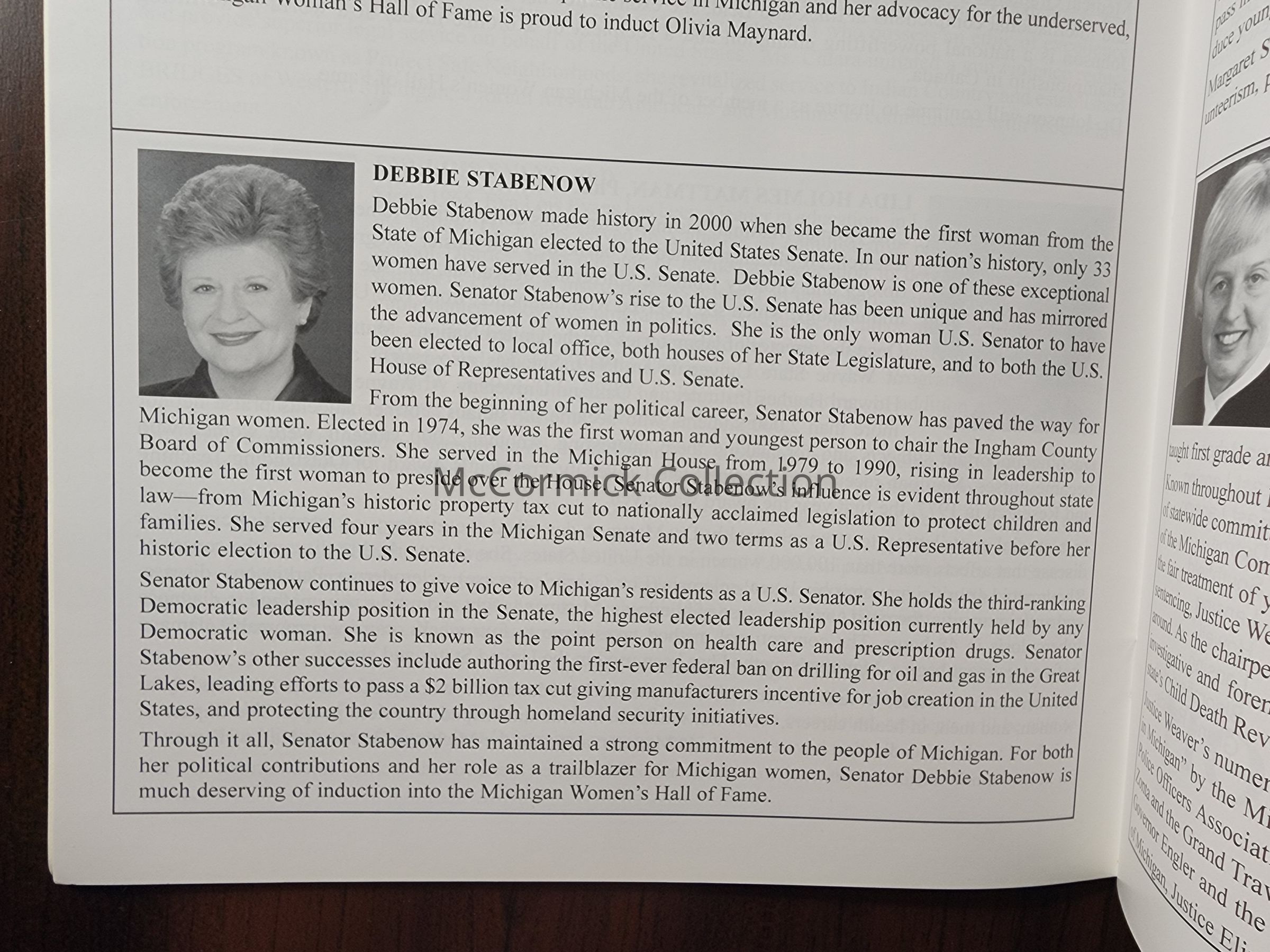 Program from the 2005 induction ceremony, among those inducted was Debbie Stabenow.