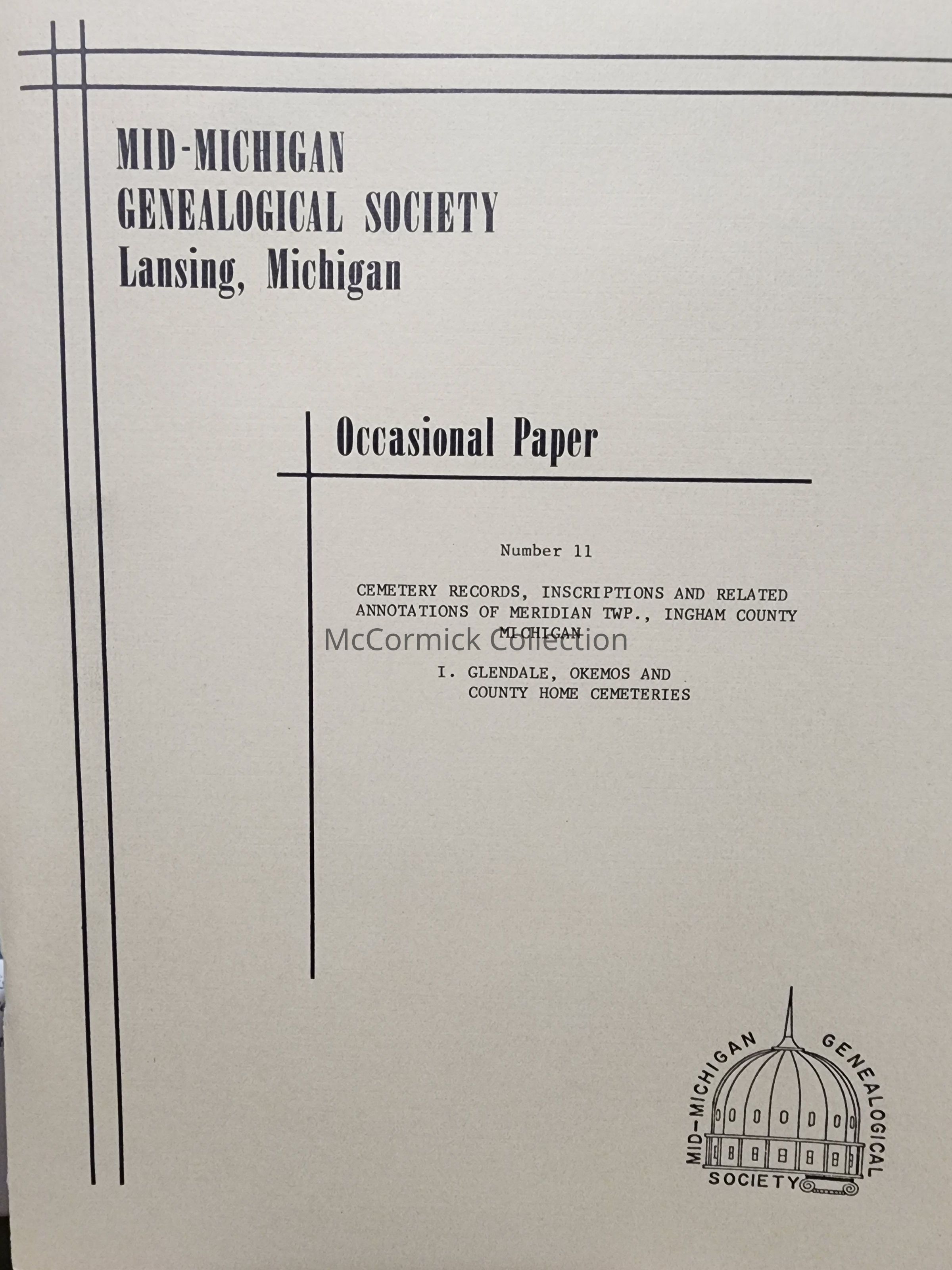 Mid-Michigan Genealogical Society Occasional Paper Number 11: Cemetery Records... Glendale, Okemos and County Home Cemeteries