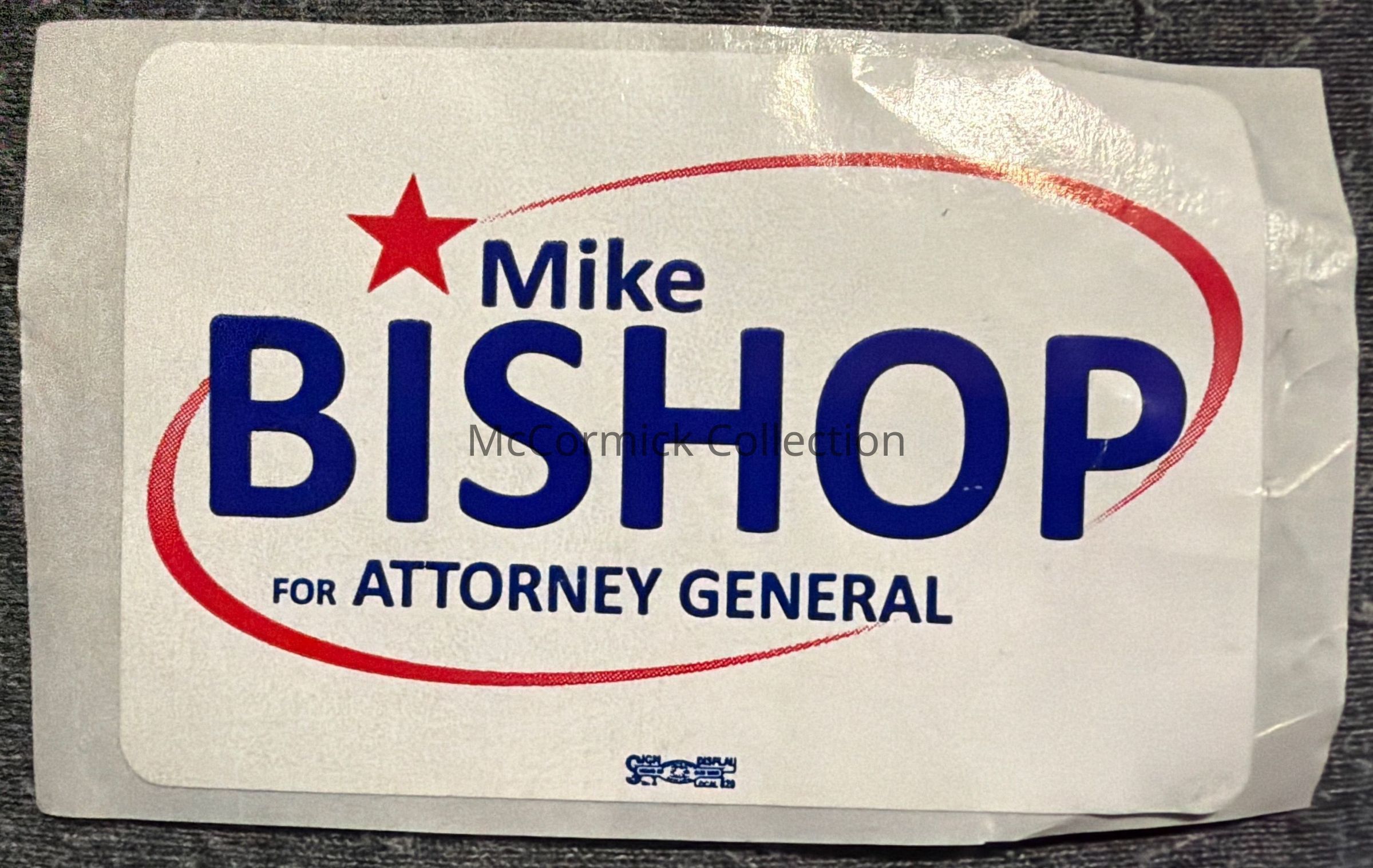 A 3” sticker for Mike Bishop for Attorney General, 2010.