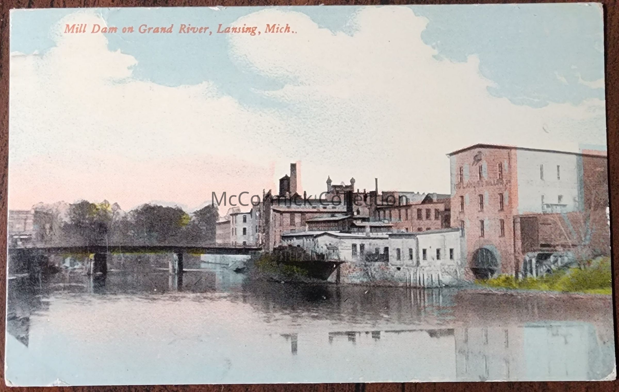 Mill Dam on Grand River, Lansing, Mich. Postcard