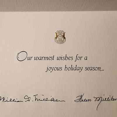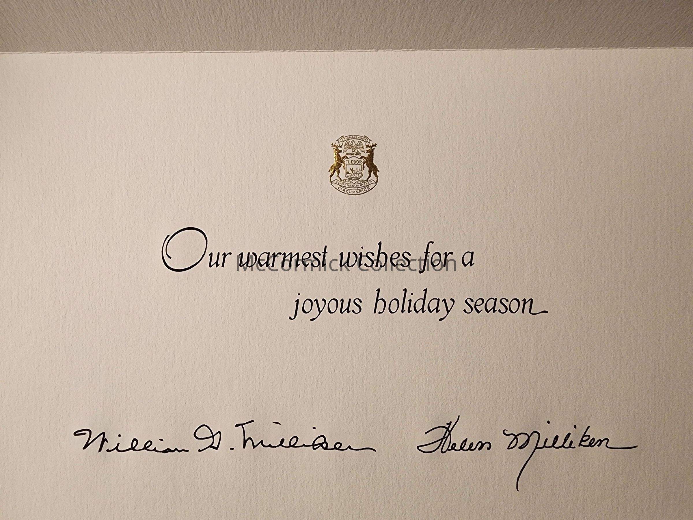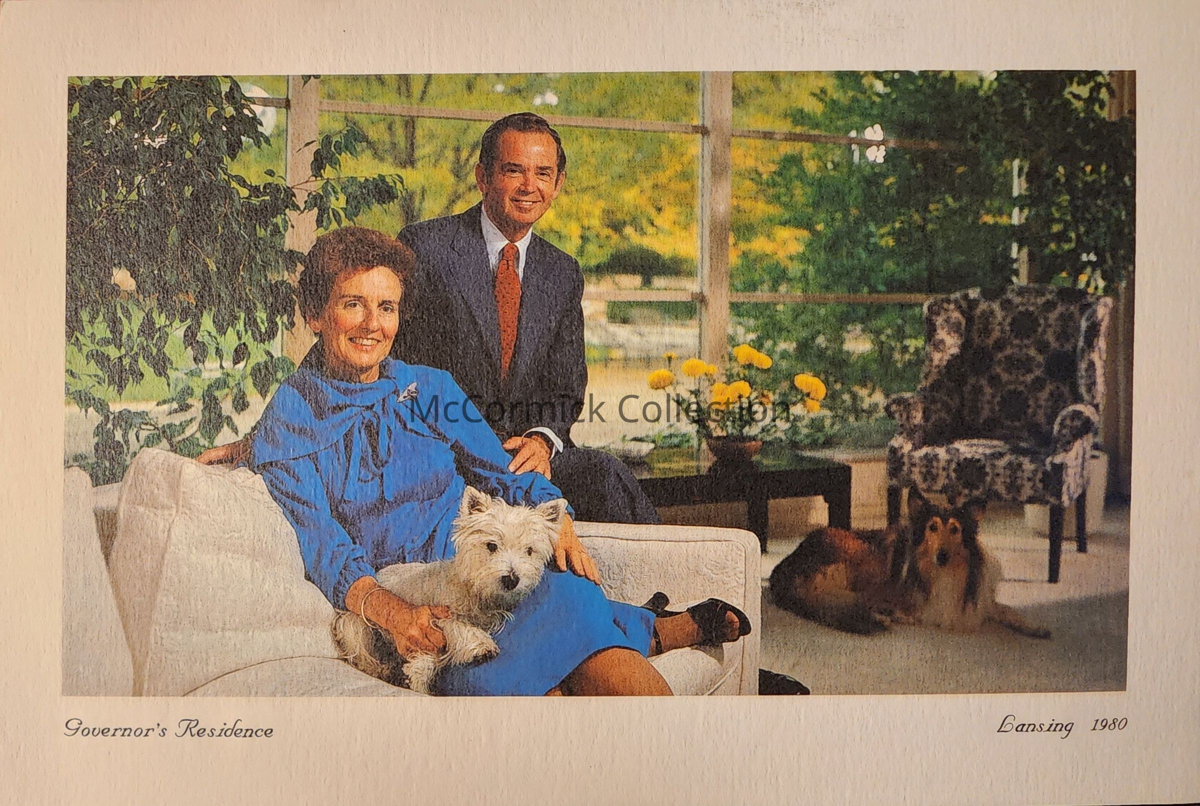 Governor and Mrs. Milliken family Christmas card, 1980, taken at the Lansing Governor's residence.