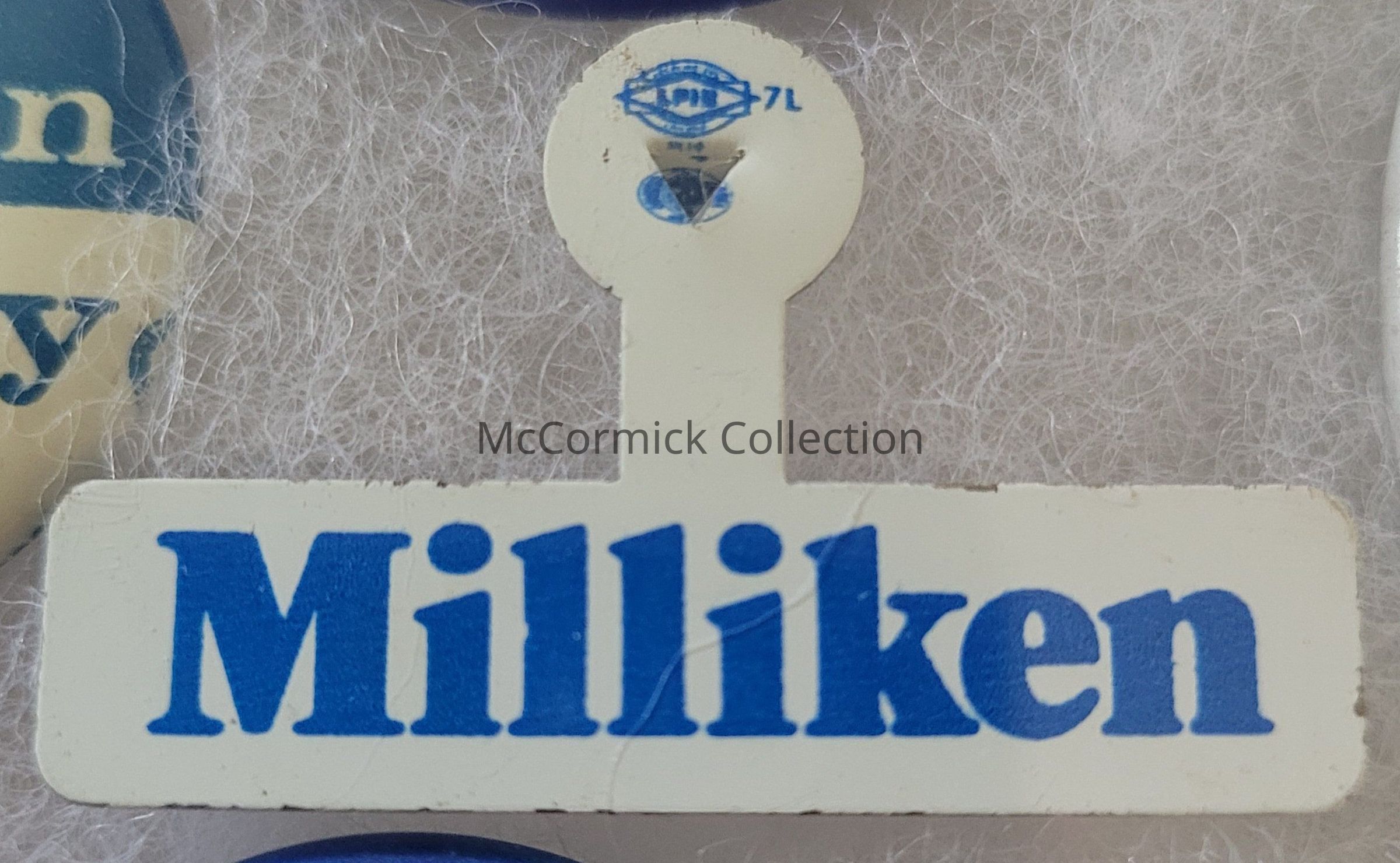A blue and white political tab for William Milliken for Governor, circa 1970s.