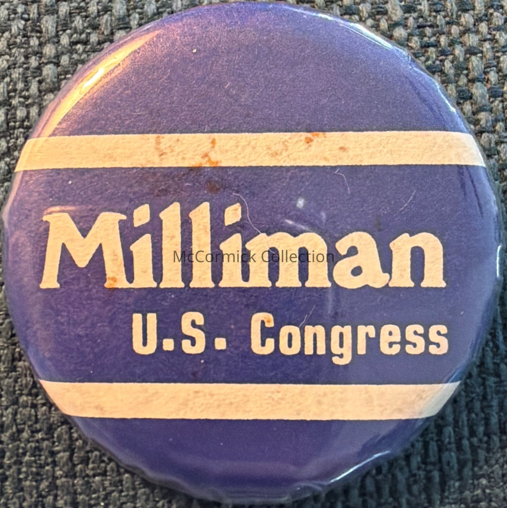 A 1.75” blue and white political button for Dick Milliman for Congress.