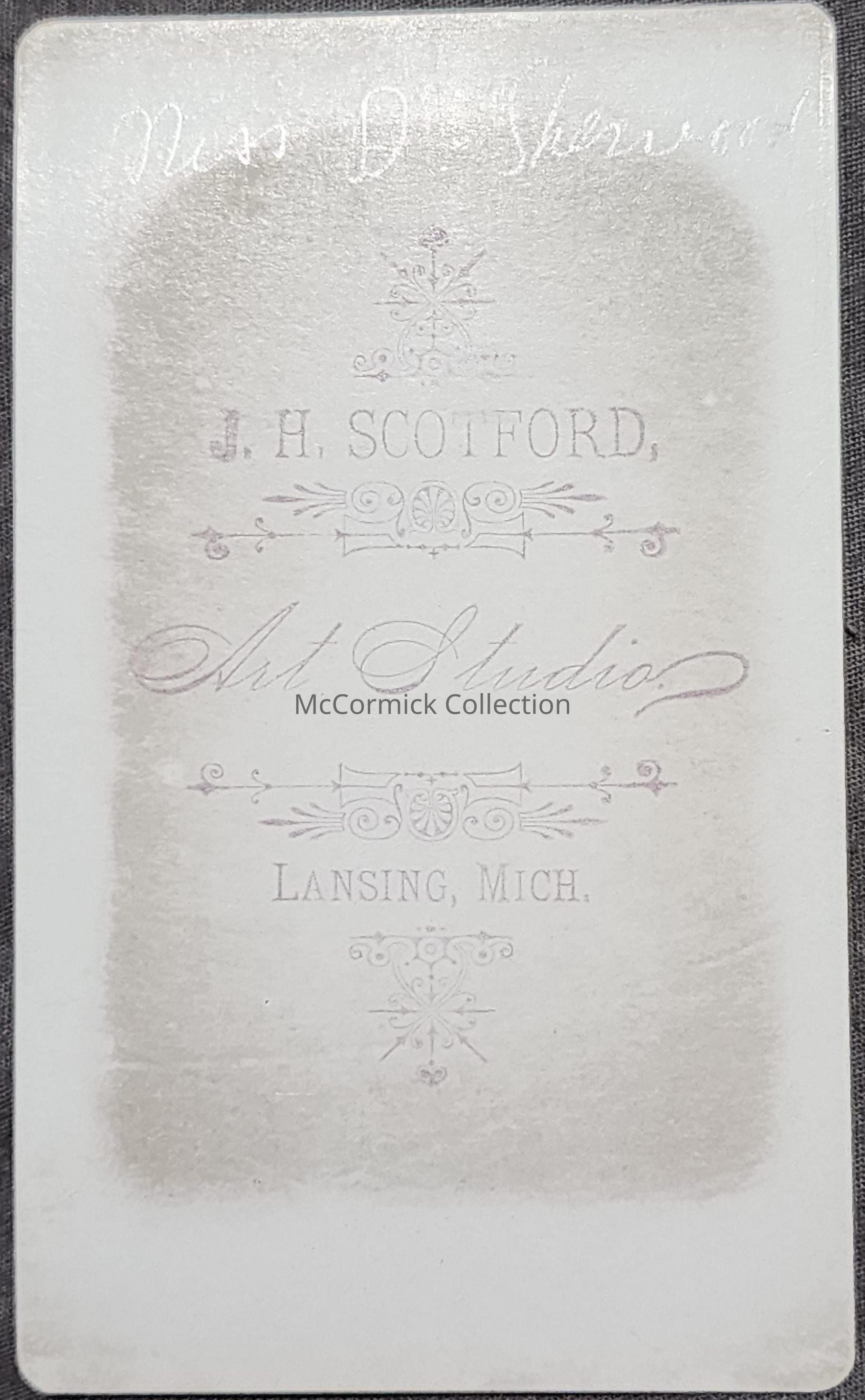 Carte de visite of Miss D. Sherwood by Lansing photographer John Harvey Scotford. Circa 1877-81.