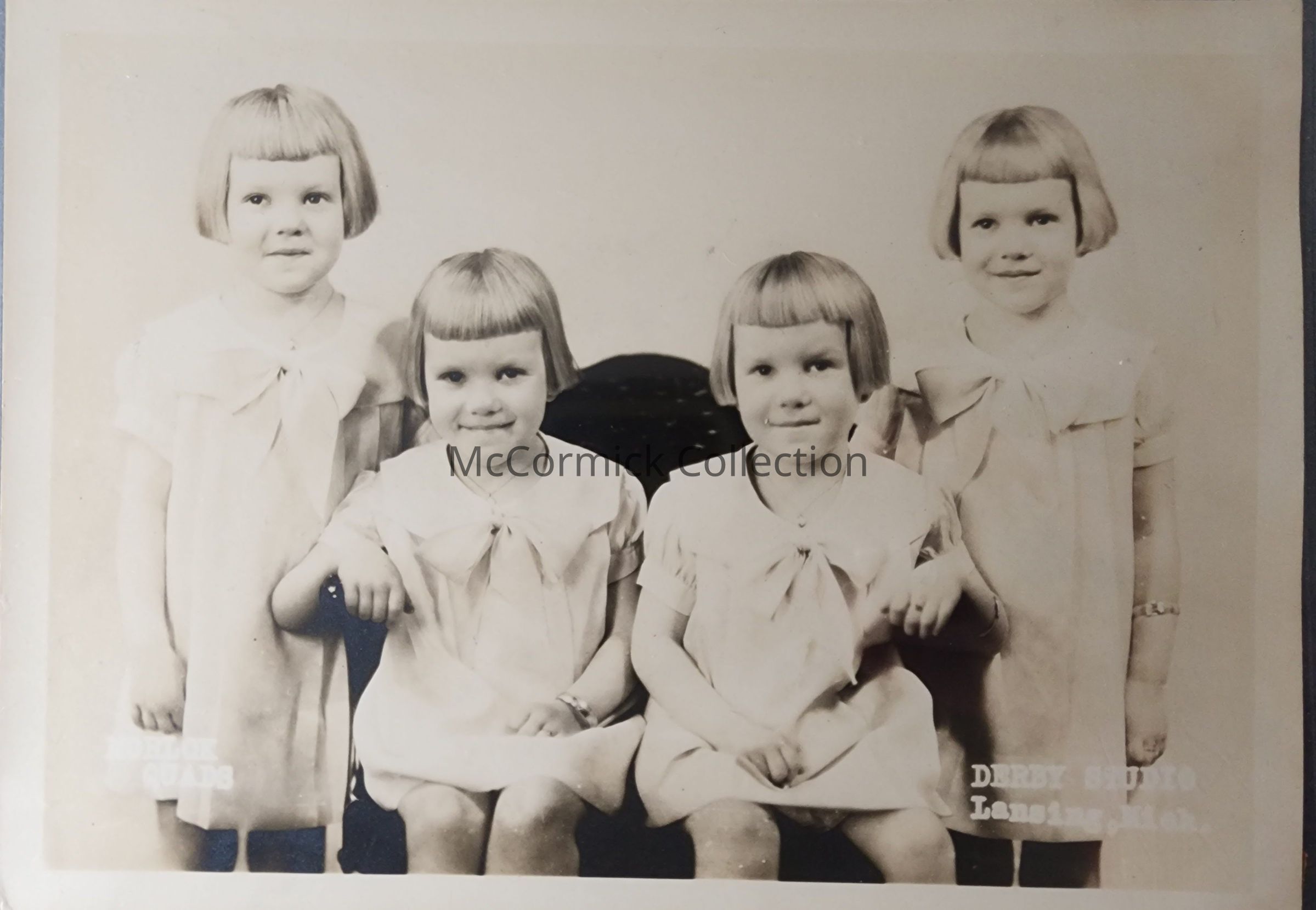 Portrait studio photograph of the Morlok Quadruplets of Lansing, Michigan, by Derby.