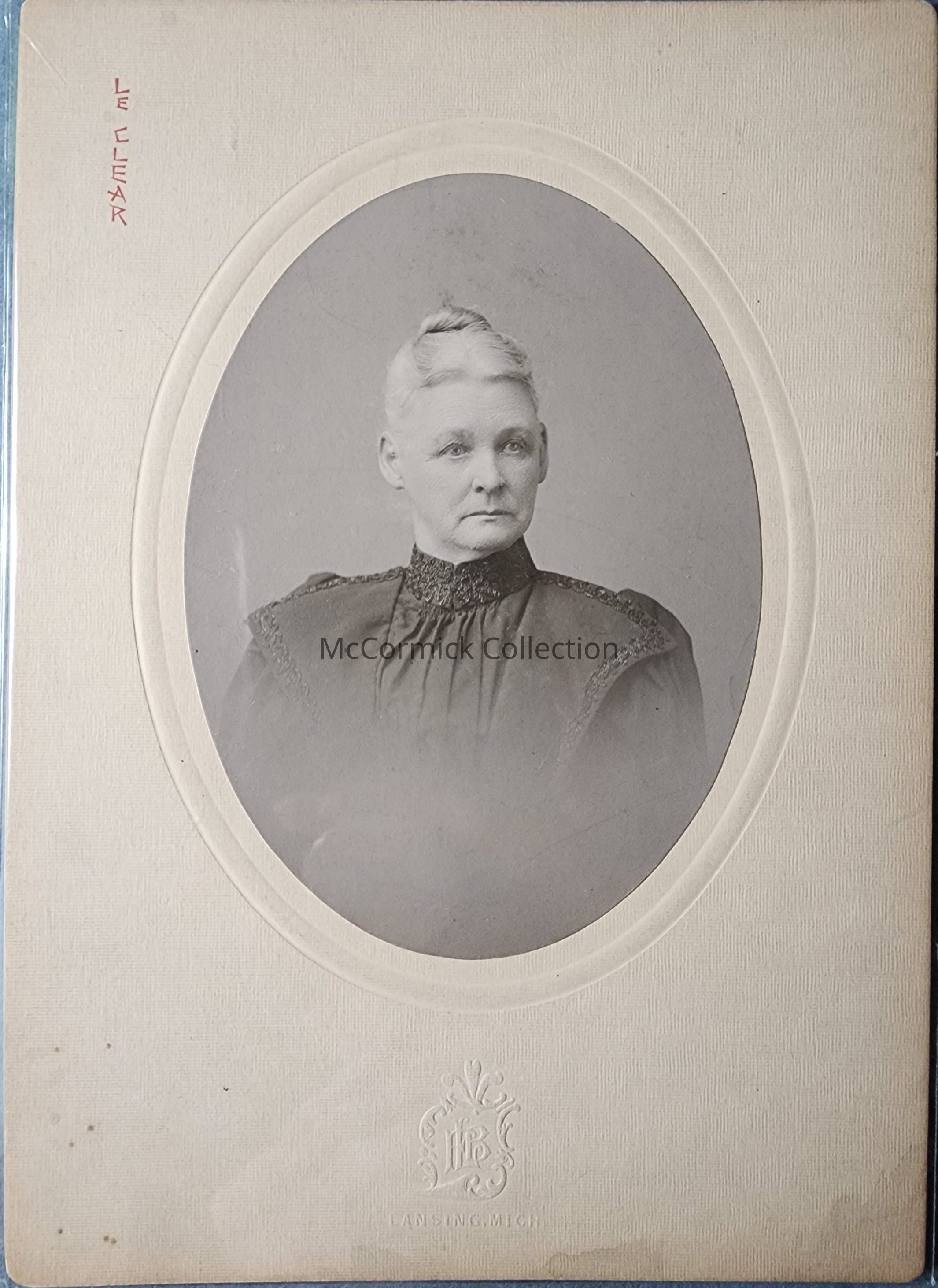 Card mounted photograph of Mrs. Faseit by Lansing photographer LeClear, circa 1900s.