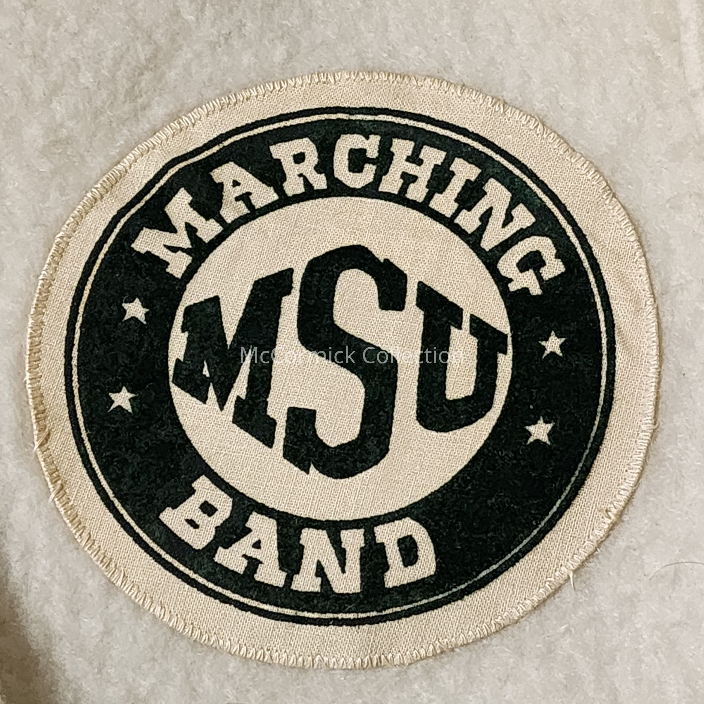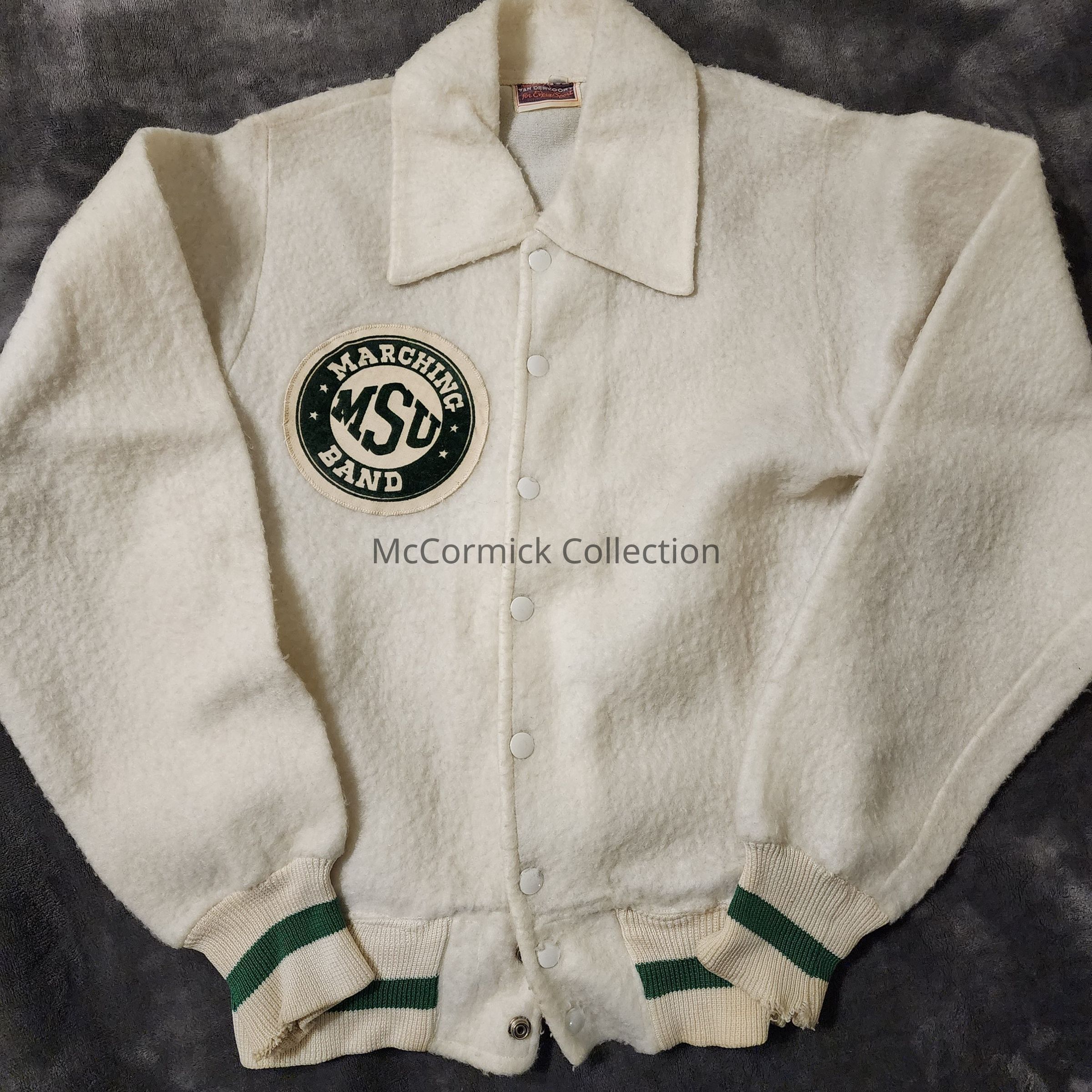 White wool jacket, purchased from Vandervoort's in Lansing, belonging to Michigan State University Spartan Marching Band drum major Paul Olin, circa 1960s.