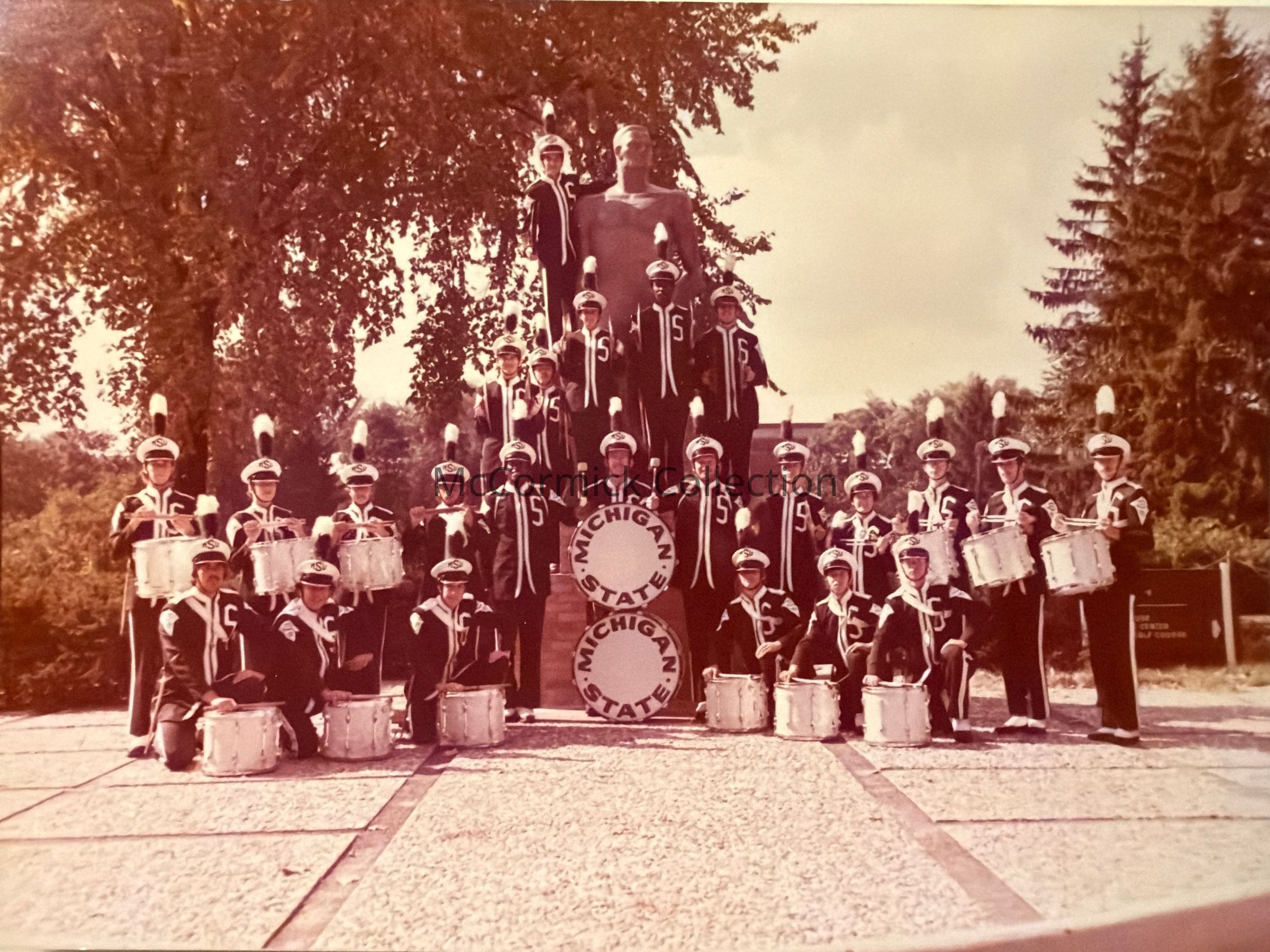 MSU Drumline with Spartan Statue Photograph