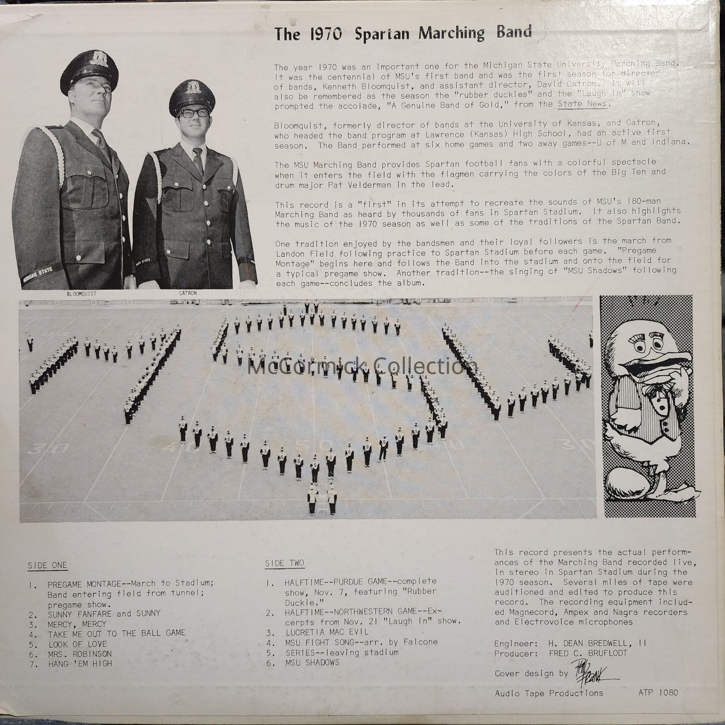 The 1970 record titled "MSU Presents the Spartan Marching Band Recorded Live in Spartan Stadium," under the direction of Kenneth G. Bloomquist.