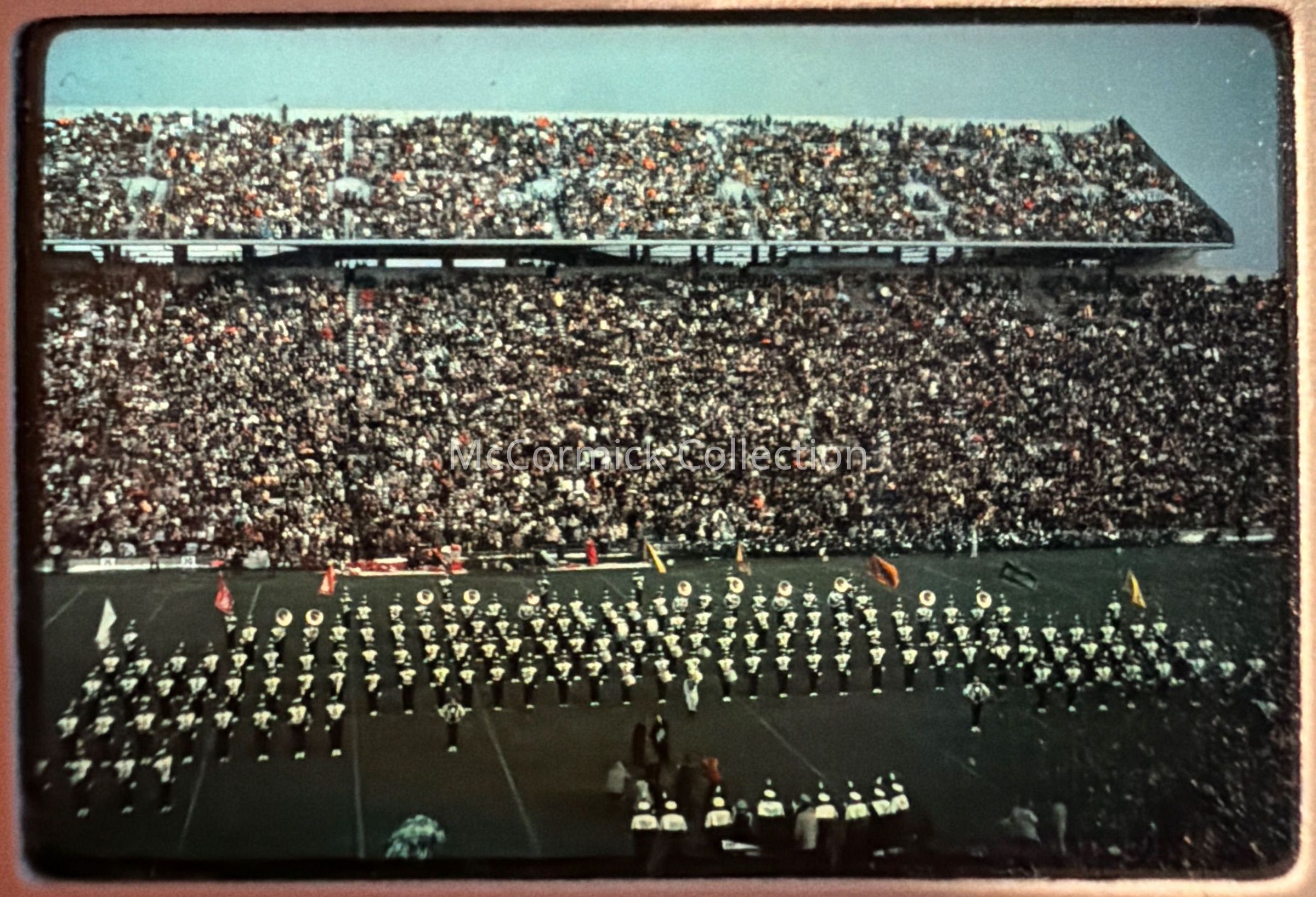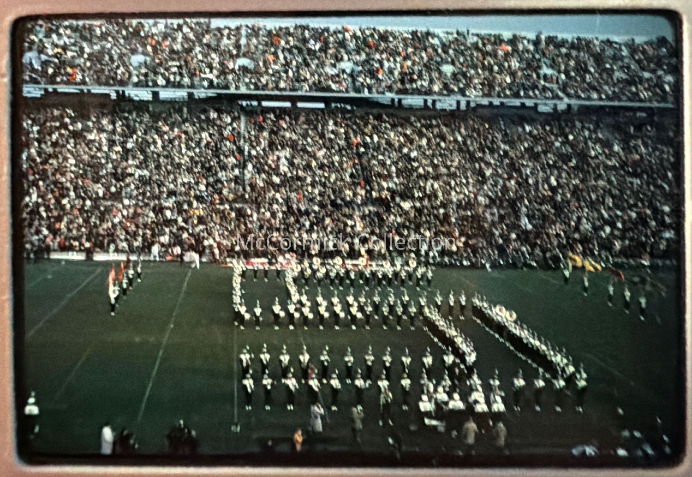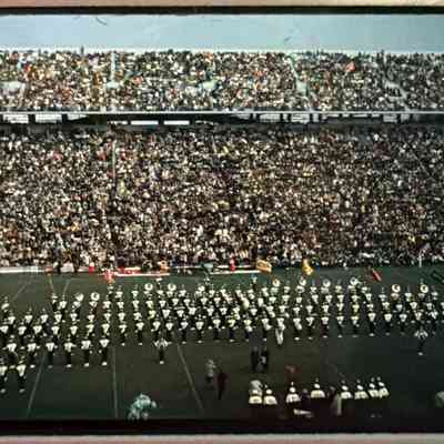 Series of slide photographs of the Michigan State University Spartan Marching Band in December 1967. Gift of Cece Falcone.