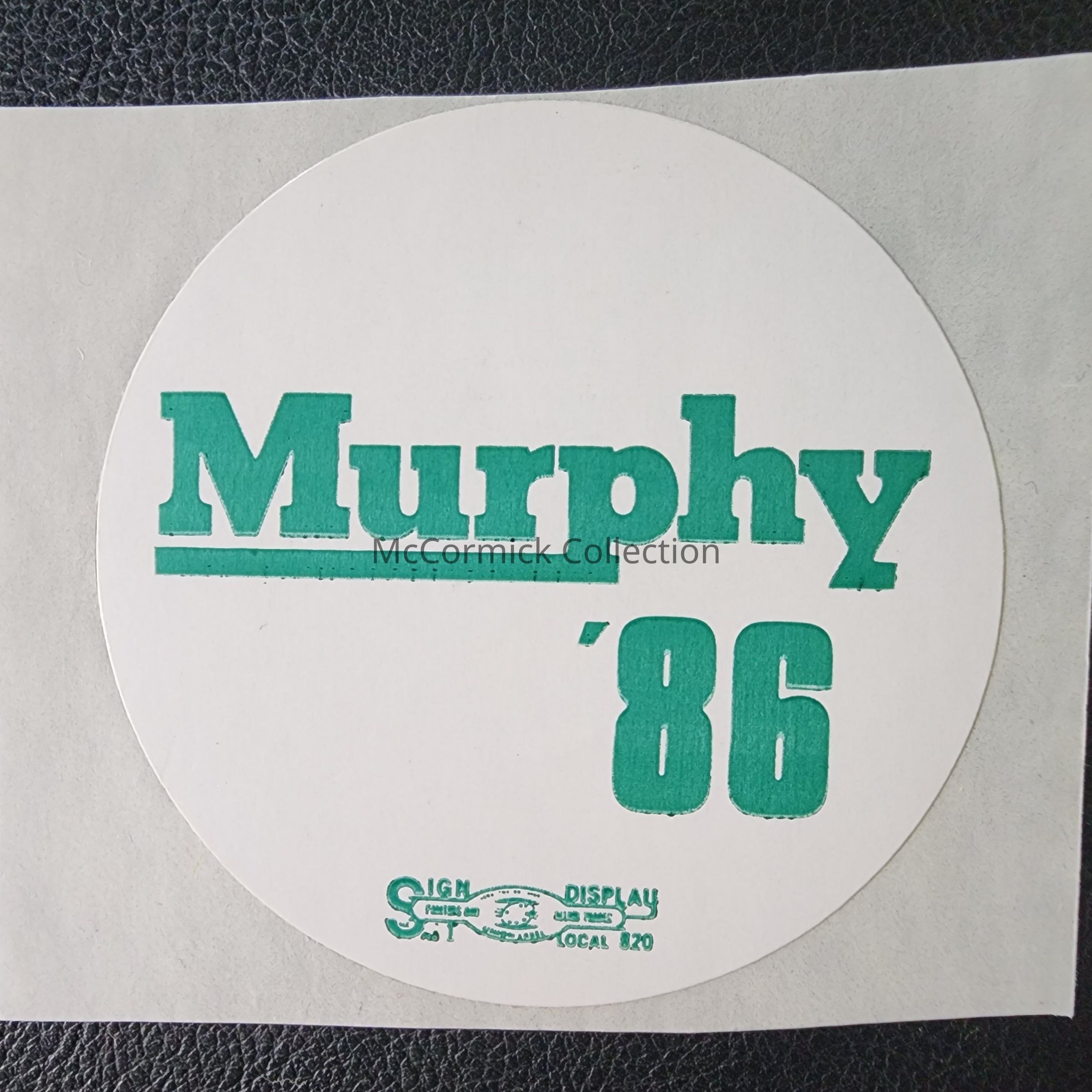 A sticker from the 1986 gubernatorial campaign of Murphy.