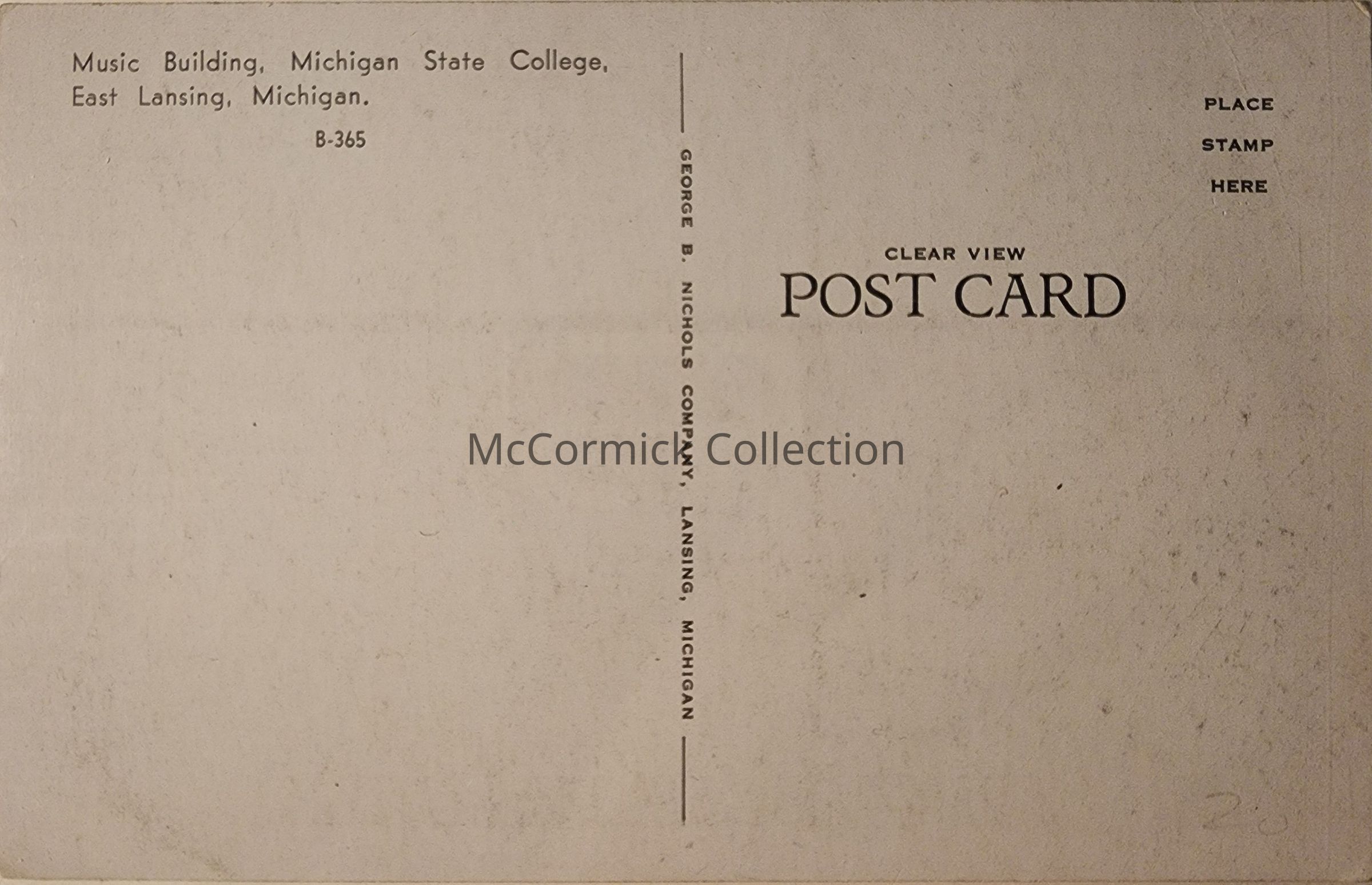 Music Building, Michigan State College, East Lansing, Michigan, Postcard