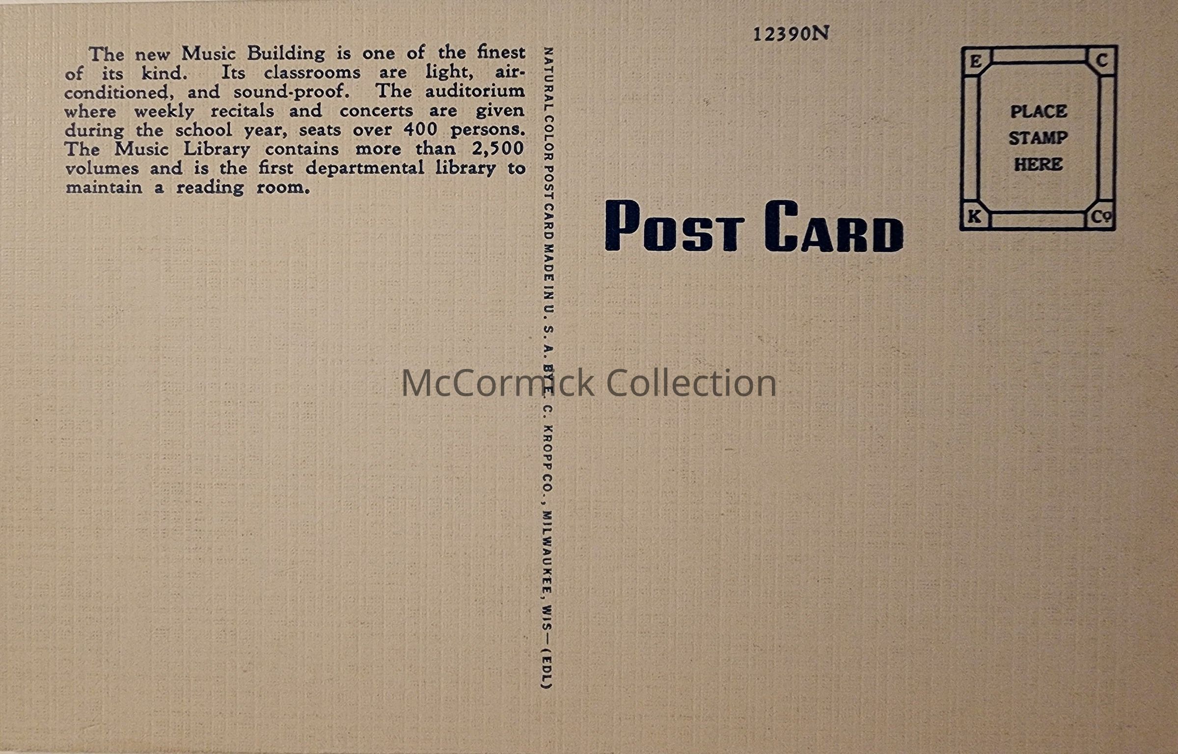 Music Building, Michigan State College, Lansing, Mich., Postcard