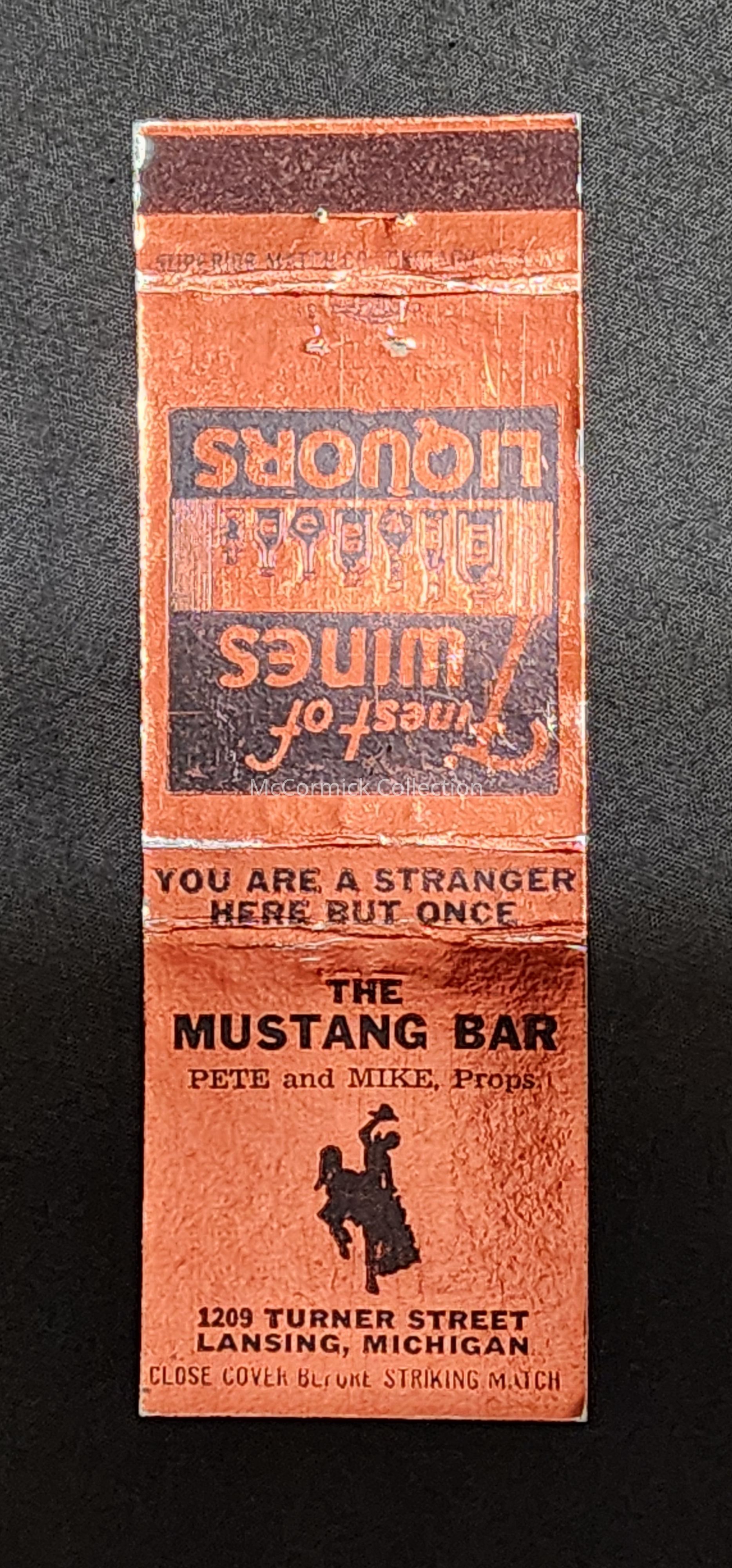 Mustang Bar, Lansing, Michigan, Matchbook